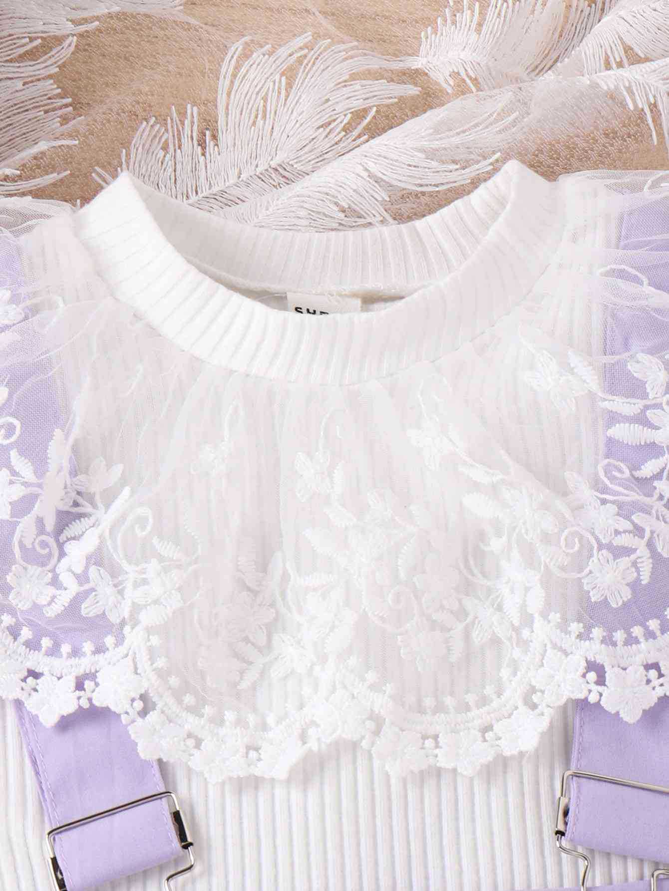 Baoxin 아동복 한국식 소녀의 봄과 여름 레이스 중공 인형 칼라 반팔 캔디 컬러 스트랩 스커트 어린이 세트