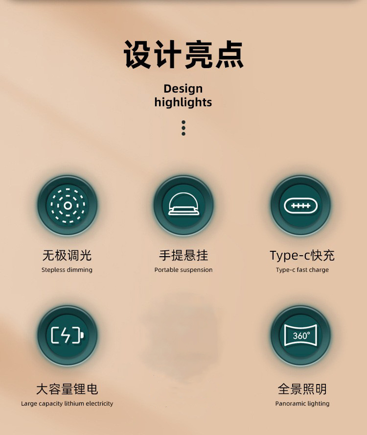 크로스 국경 새로운 다기능 캠핑 조명 TYPE-C 충전식 휴대용 조명 야외 라이브 출력 비상 텐트 조명스토어 가기