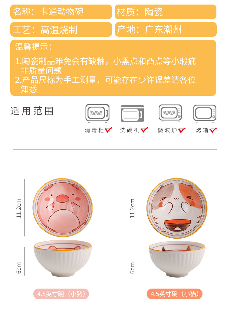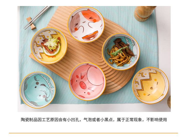 밥그릇 단품 식기 도자기 작은 그릇 밥그릇 도자기 그릇 백자 신선하고 귀여운 만화