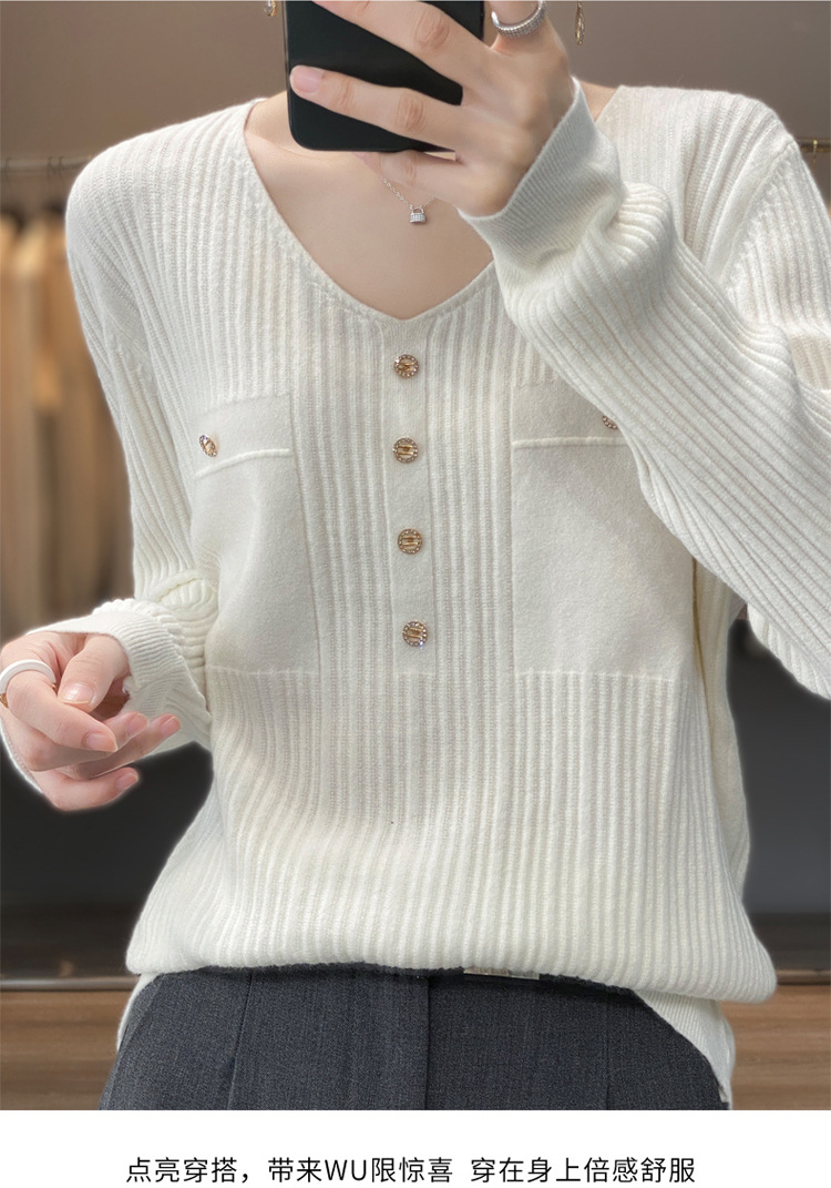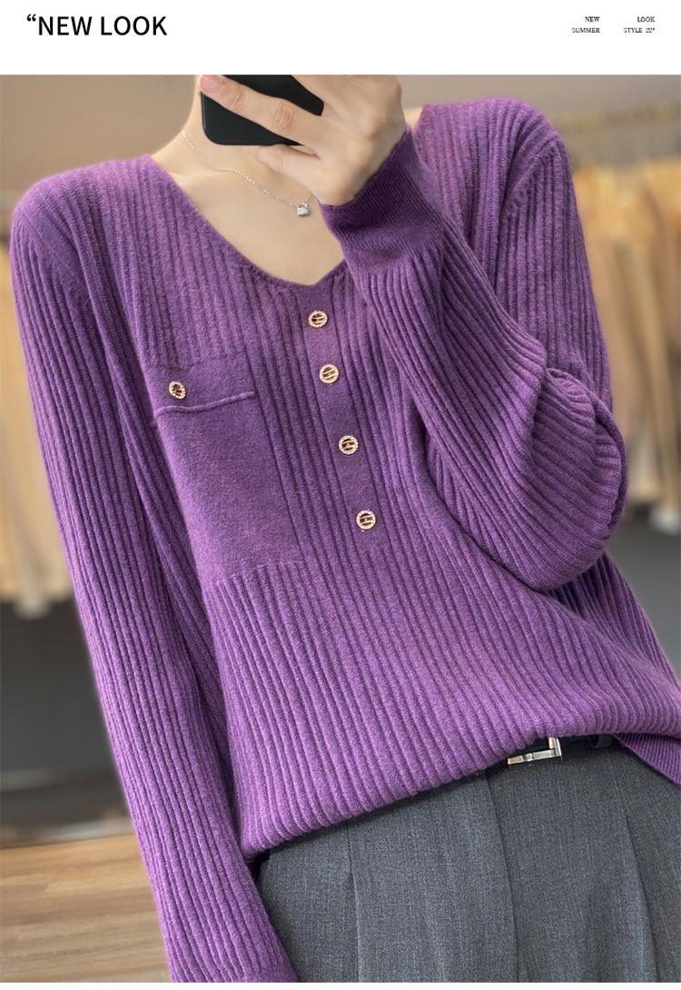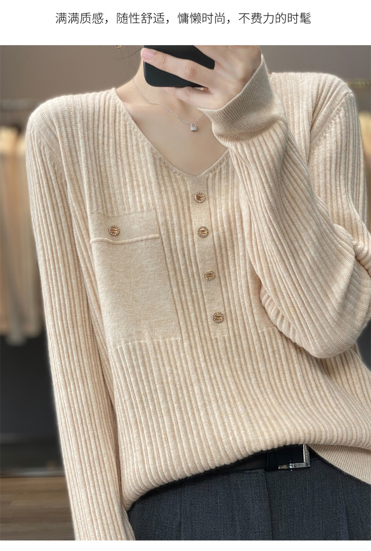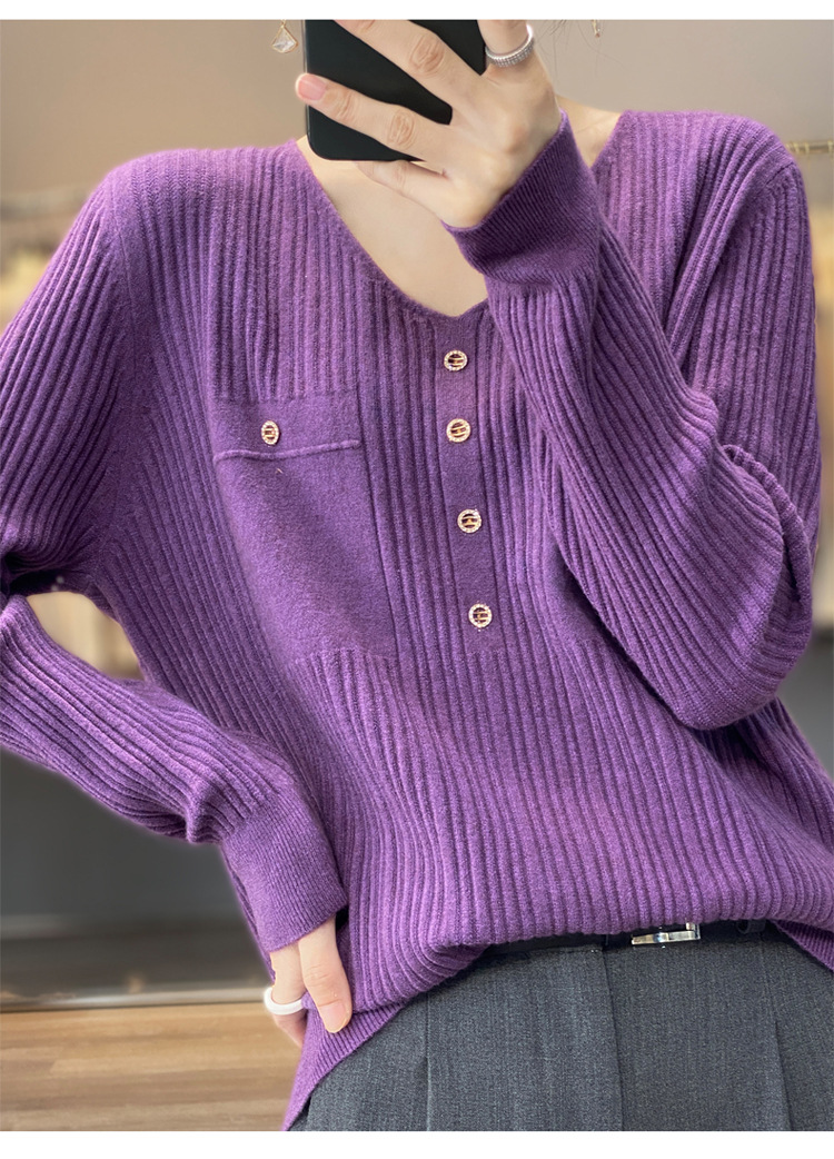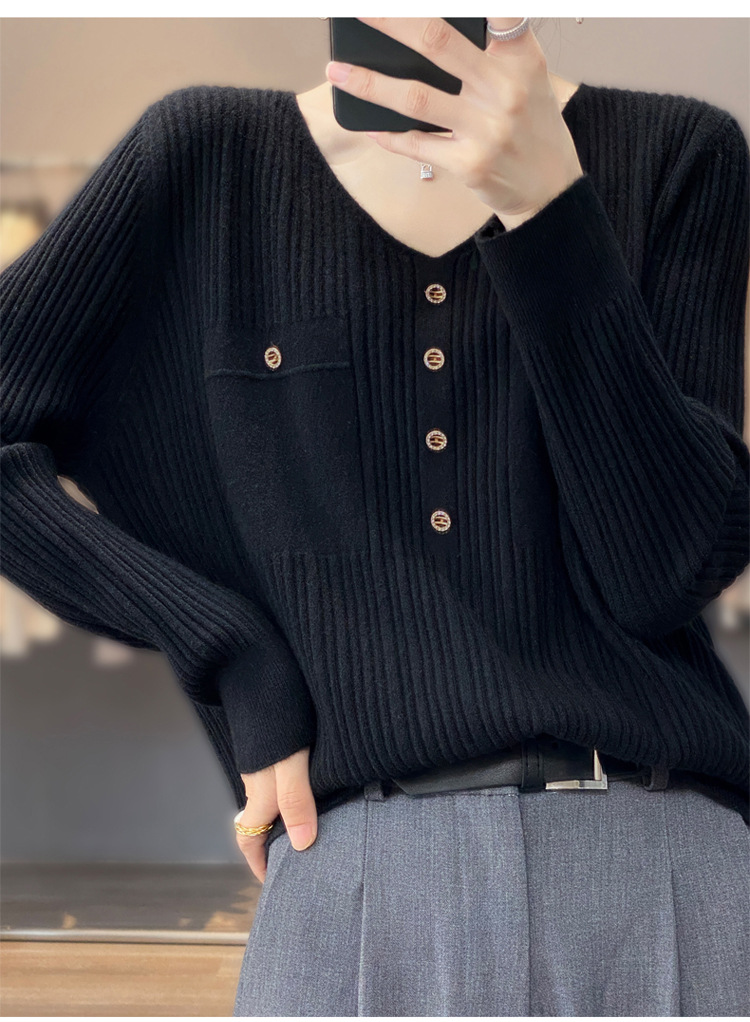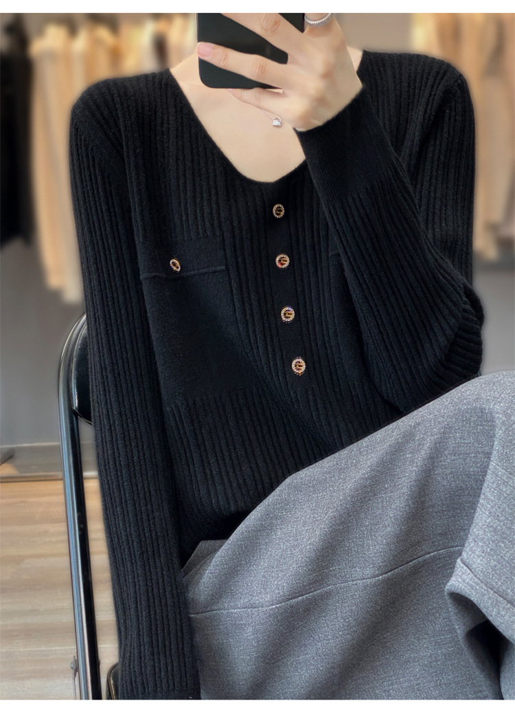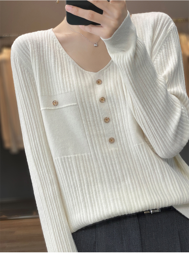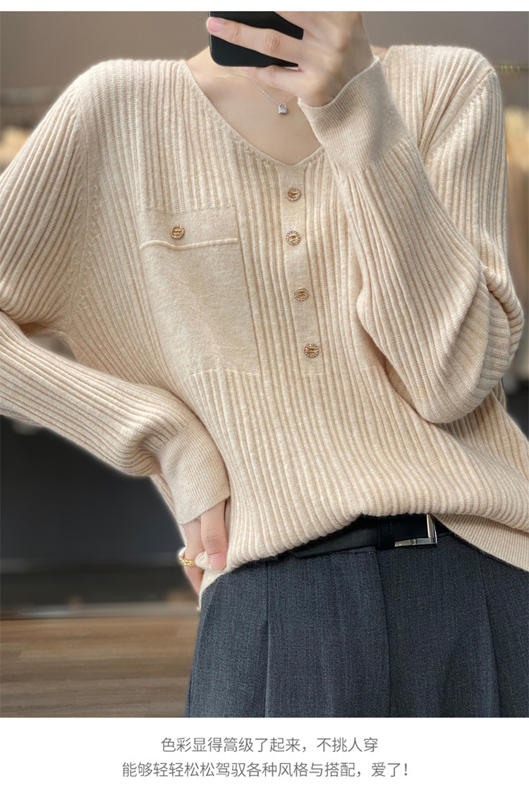 울 혼방 봄과 가을 새로운 V-넥 니트 스웨터 여성용 겉옷 스웨터 베이스 셔츠가있는 느슨한 슬리밍 탑 트렌디
