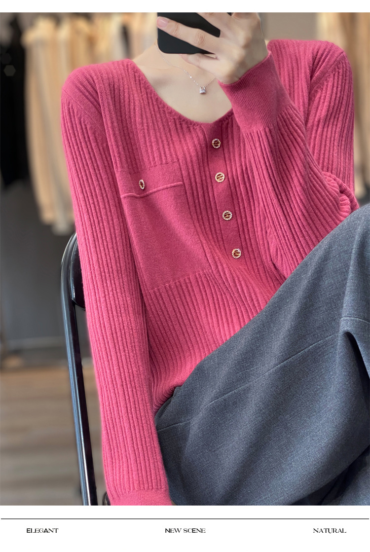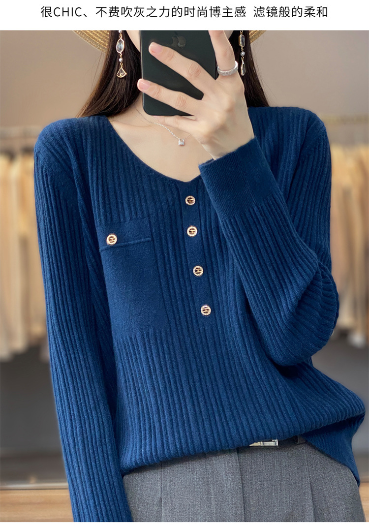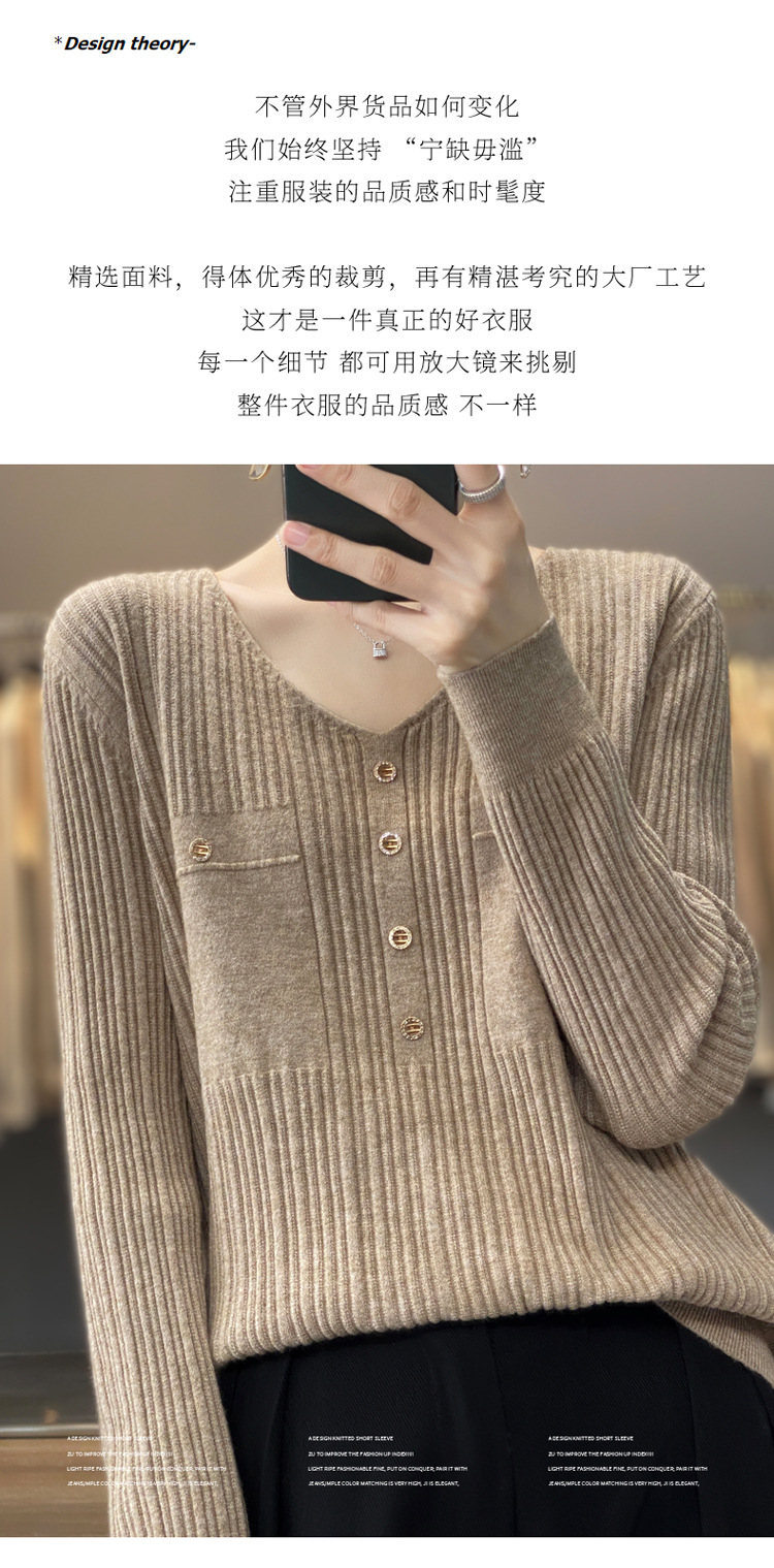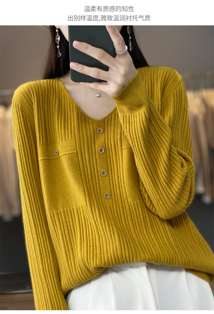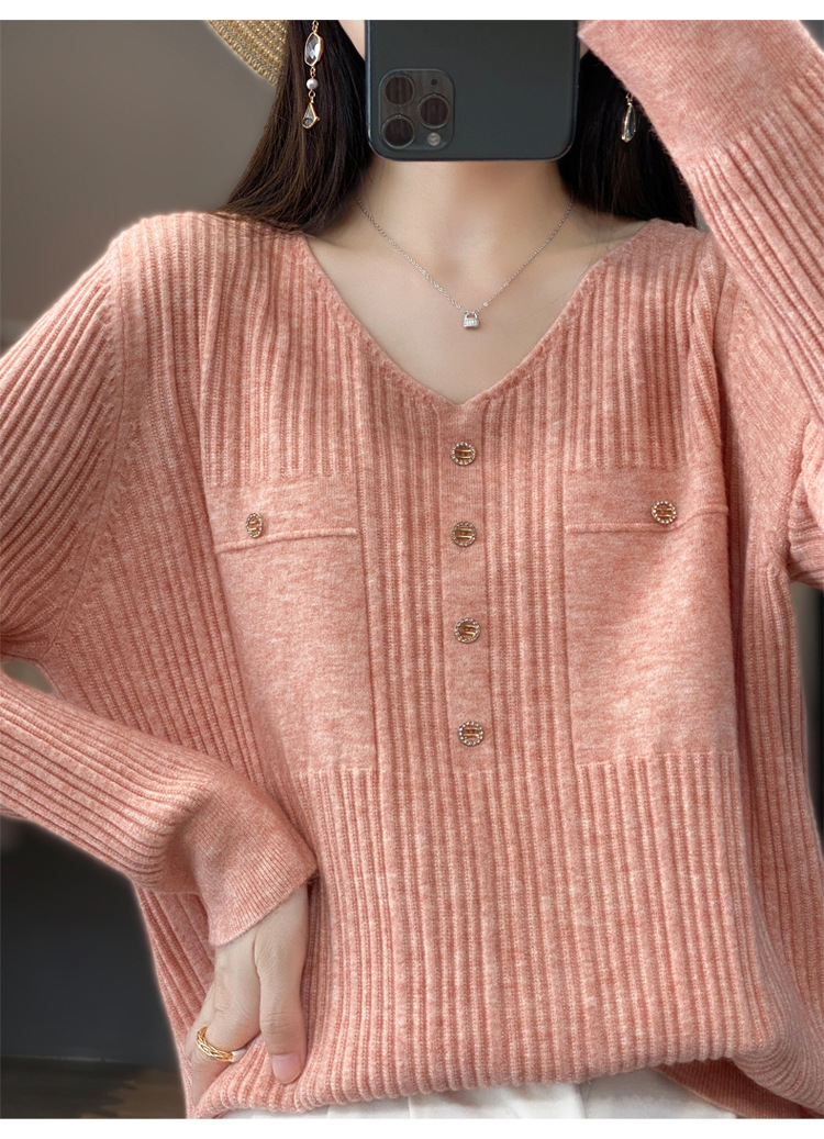 울 혼방 봄과 가을 새로운 V-넥 니트 스웨터 여성용 겉옷 스웨터 베이스 셔츠가있는 느슨한 슬리밍 탑 트렌디스토어 가기