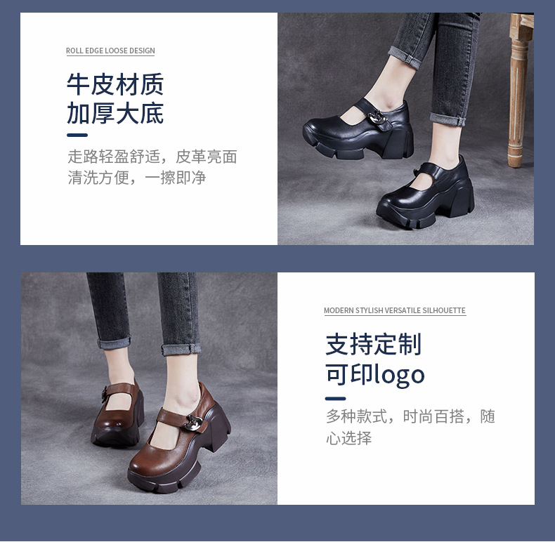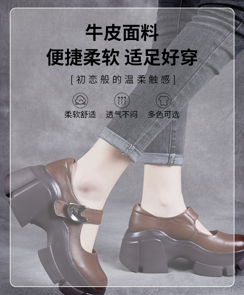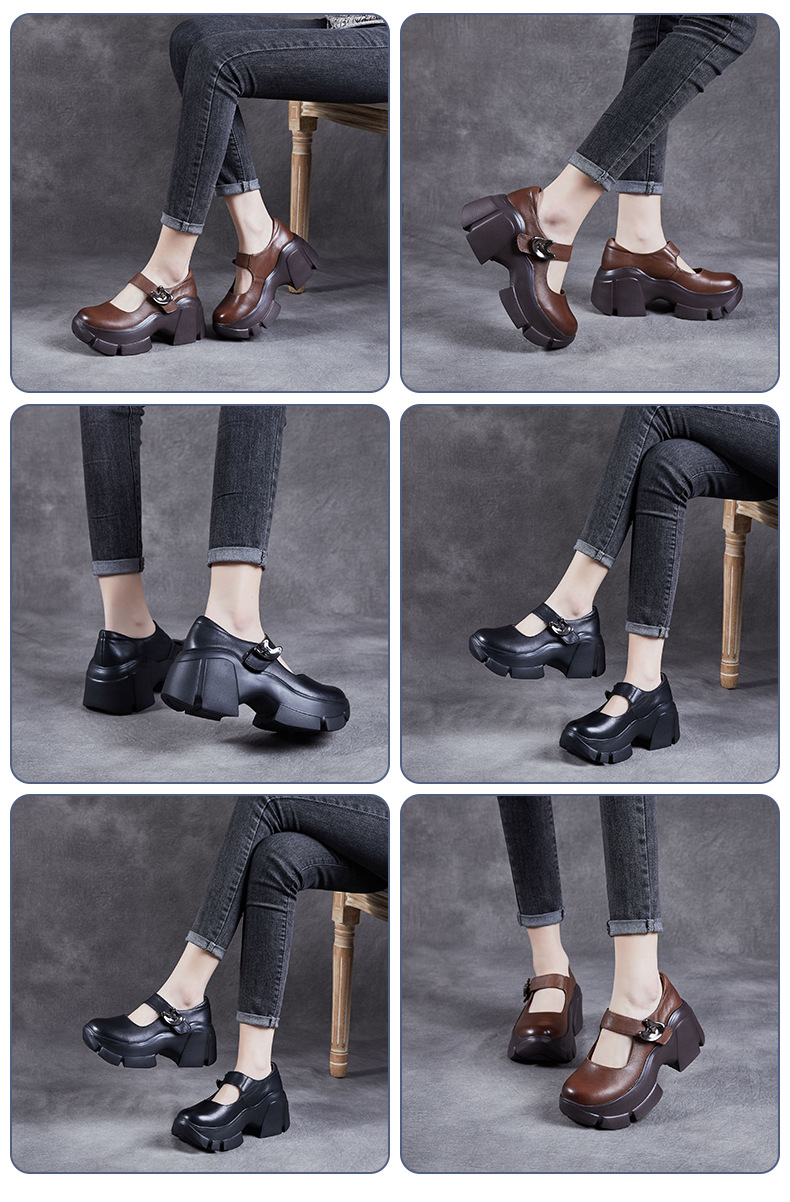 2025 봄 여름 신상 레트로 가죽 여성 싱글 슈즈 플랫폼 두꺼운 밑창 로퍼 얕은 입 영국식 라운드 발가락 부드러운 가죽스토어 가기