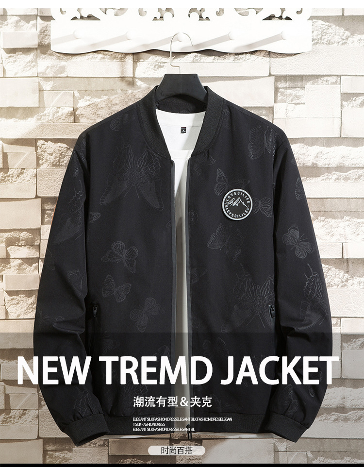 뚱뚱한 남자의 봄과 가을 플러스 무게 초대형 느슨한 모든 일치 방풍 캐주얼 재킷 패션 트렌드 야구 칼라 재킷스토어 가기