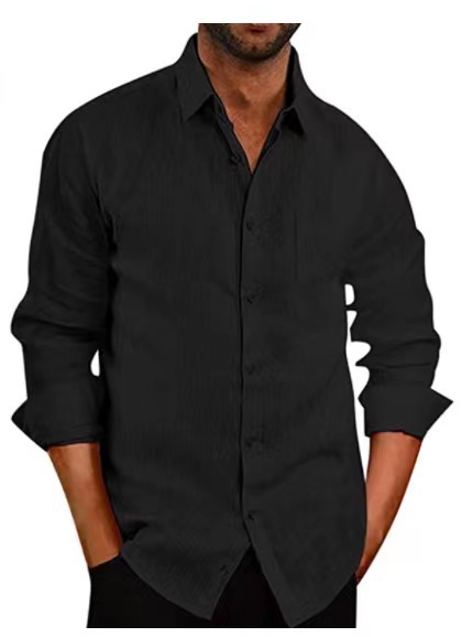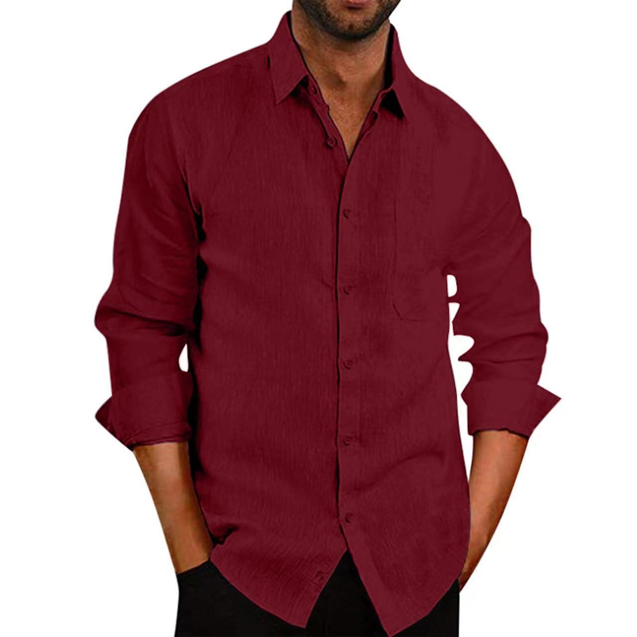 아마존 2023 이베이 핫 세일 새로운 폭발 옷깃 단색 긴 소매 버튼 남성용 린넨 셔츠 남성복
