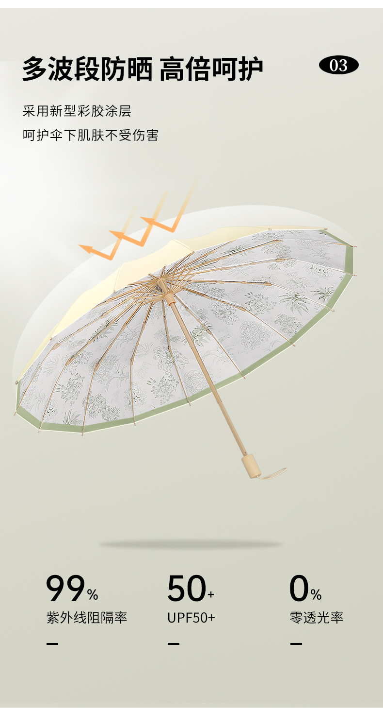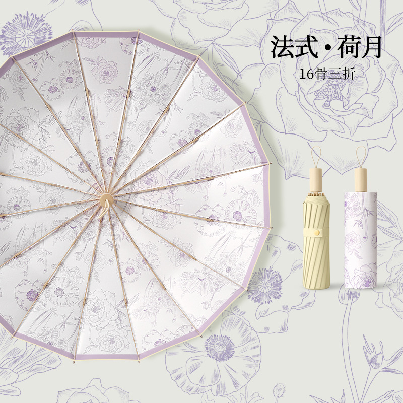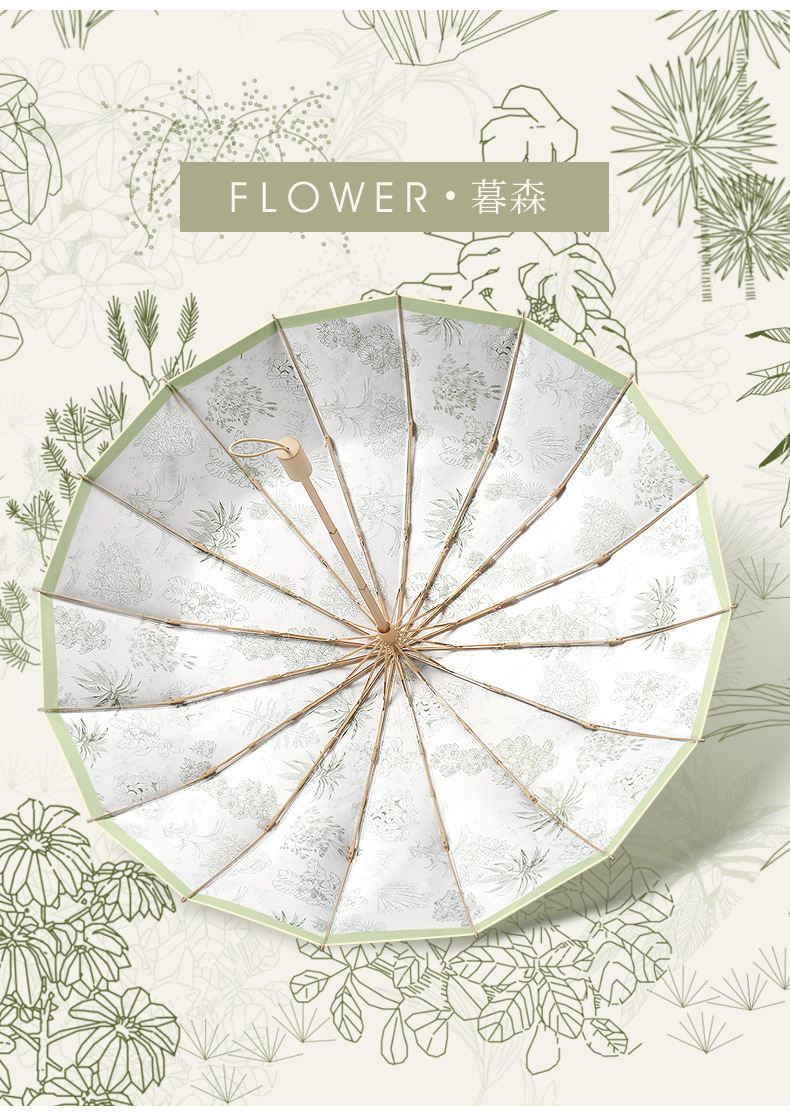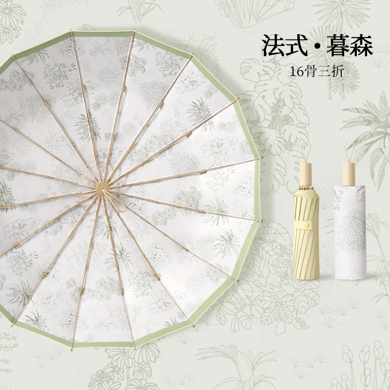 머리카락 3 배 16 본 핸드 컬러 플라스틱 우산 단단한 나무 손잡이 우산 썬 썬 우산 로고