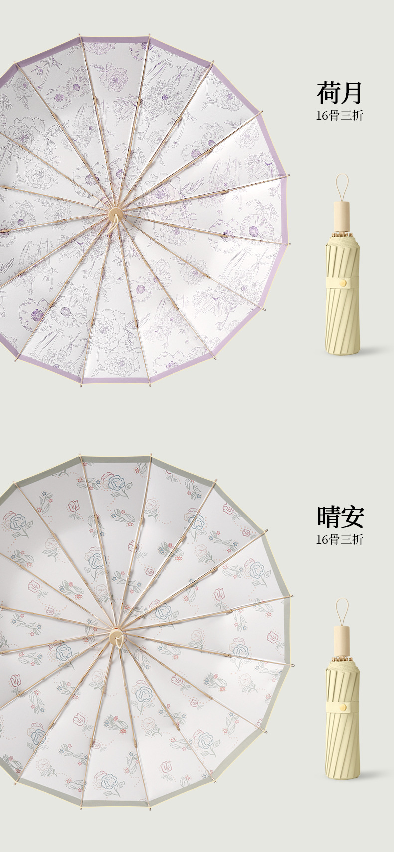 머리카락 3 배 16 본 핸드 컬러 플라스틱 우산 단단한 나무 손잡이 우산 썬 썬 우산 로고스토어 가기
