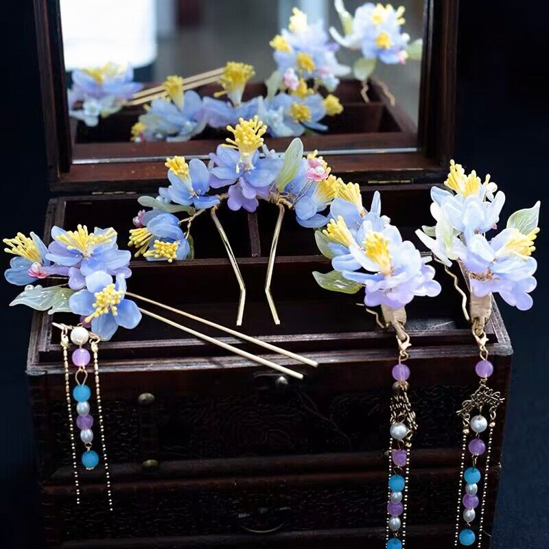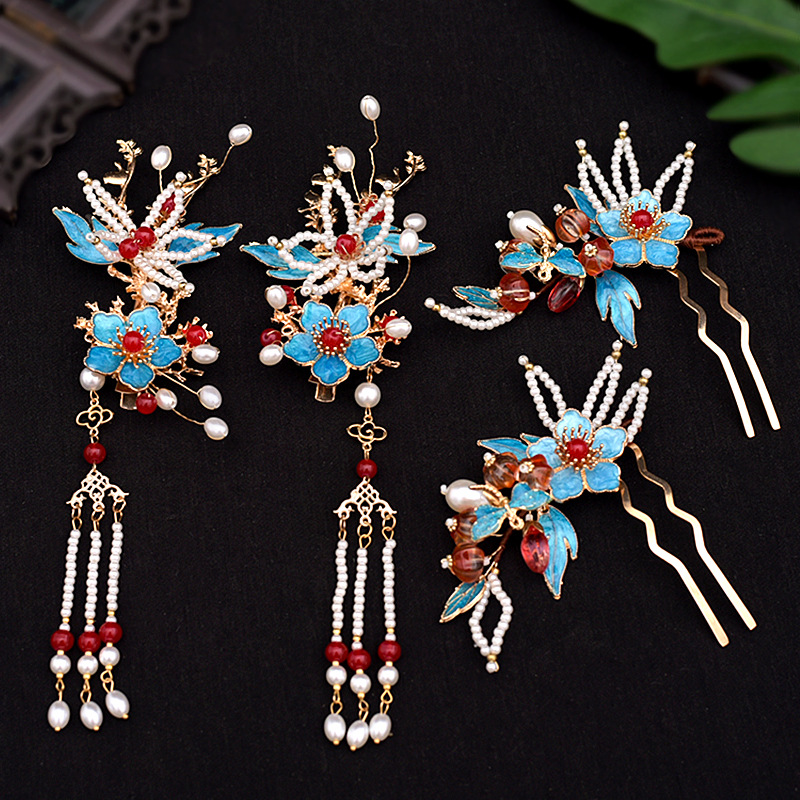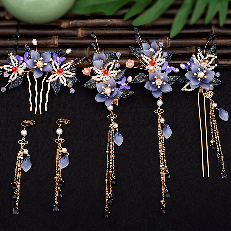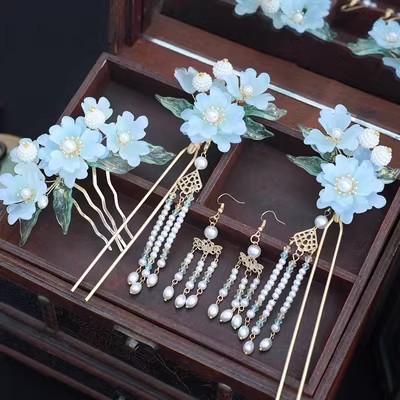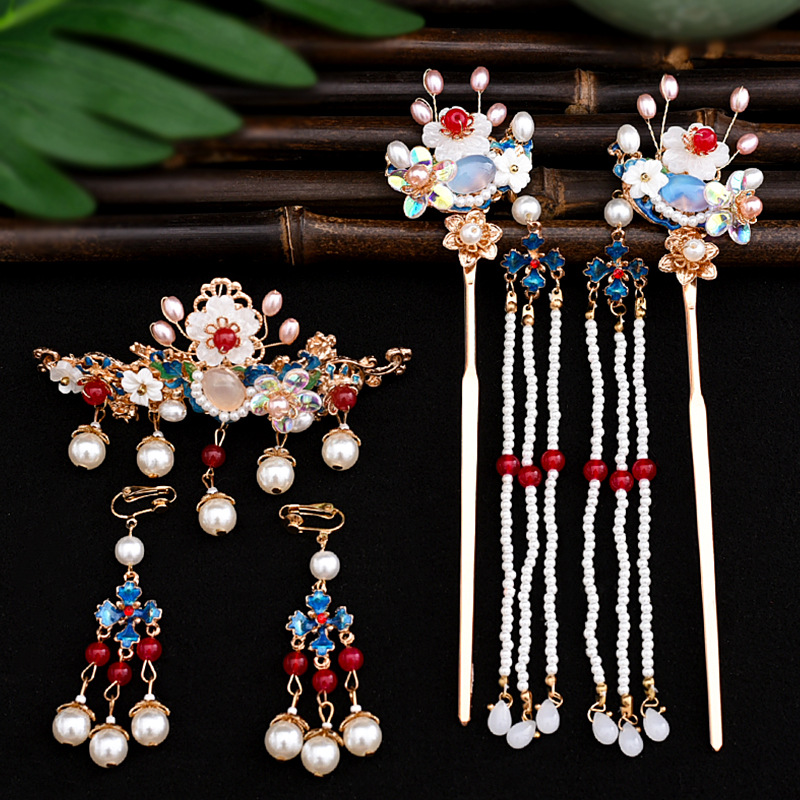 골동품 Hanfu 액세서리 슈퍼 요정 머리핀 세트 술 머리핀 모자 단계별 머리핀 고대 의류 액세서리 Hanfu 헤어 액세서리스토어 가기