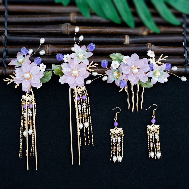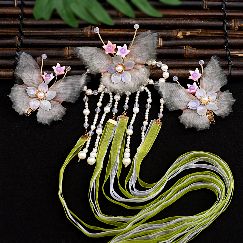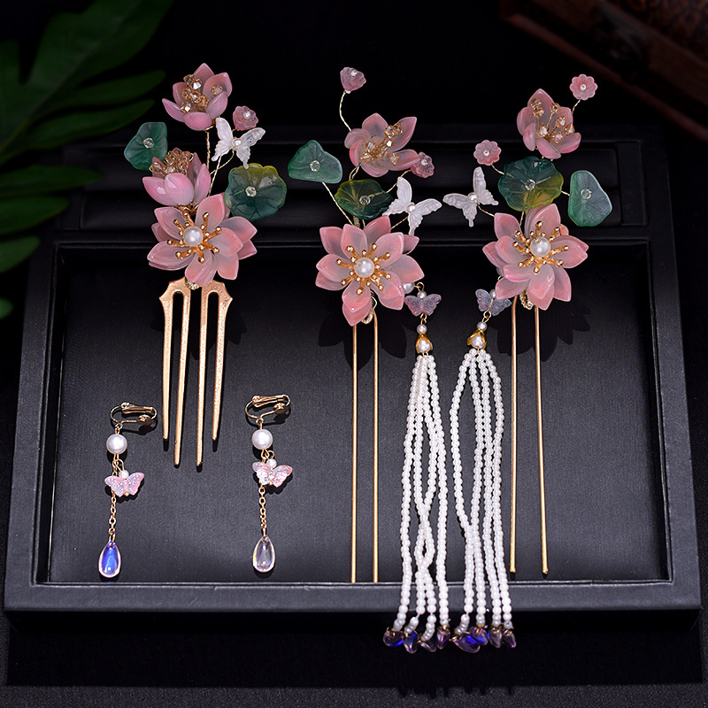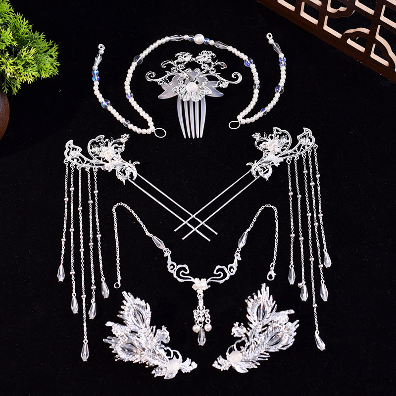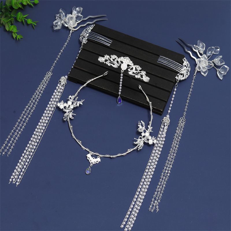골동품 Hanfu 액세서리 슈퍼 요정 머리핀 세트 술 머리핀 모자 단계별 머리핀 고대 의류 액세서리 Hanfu 헤어 액세서리
