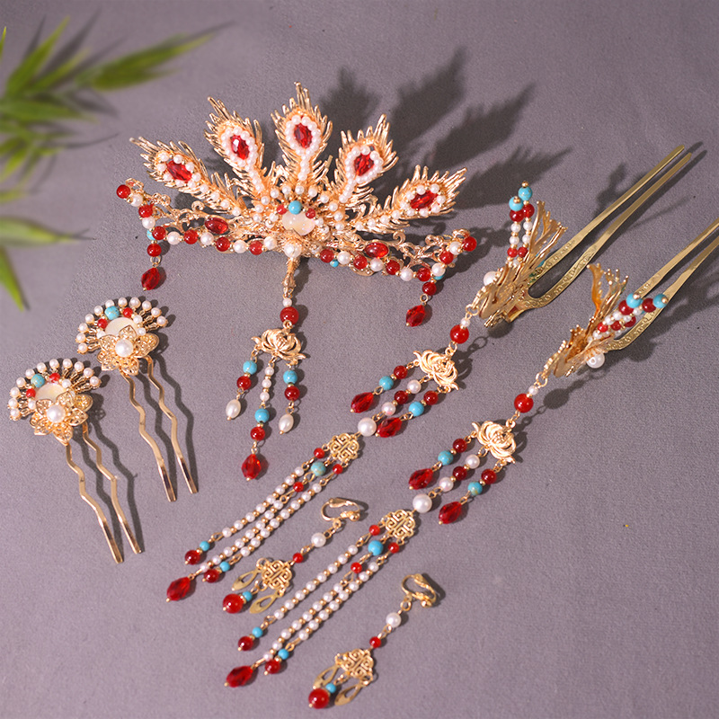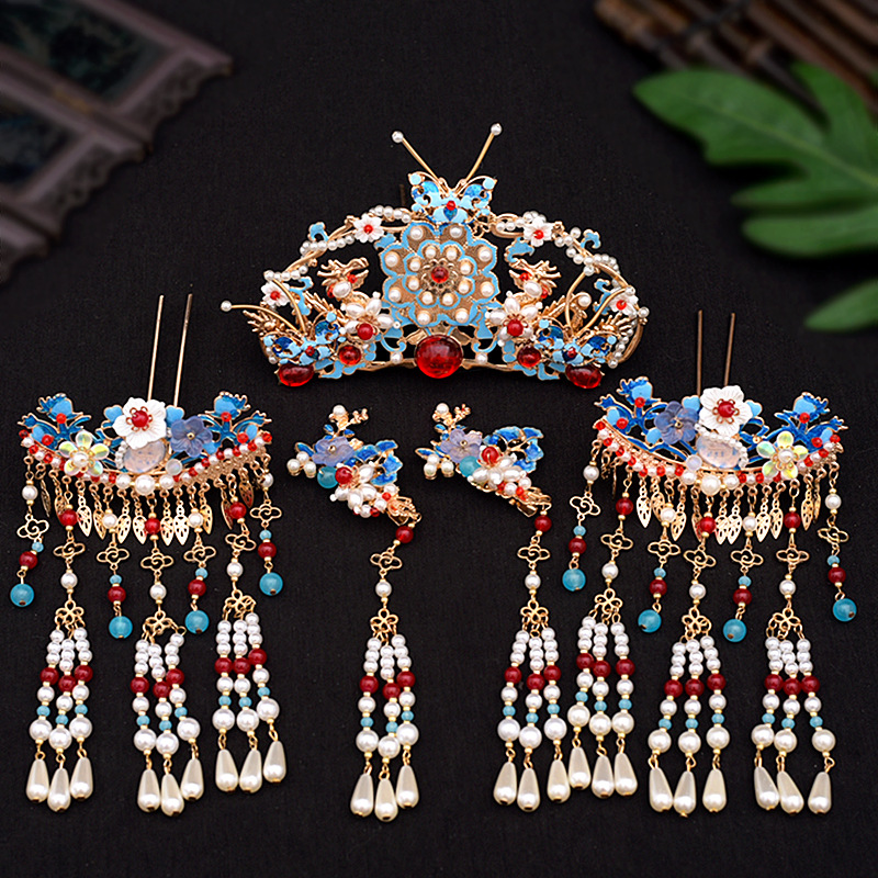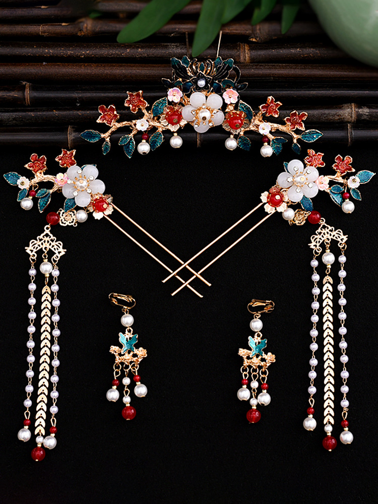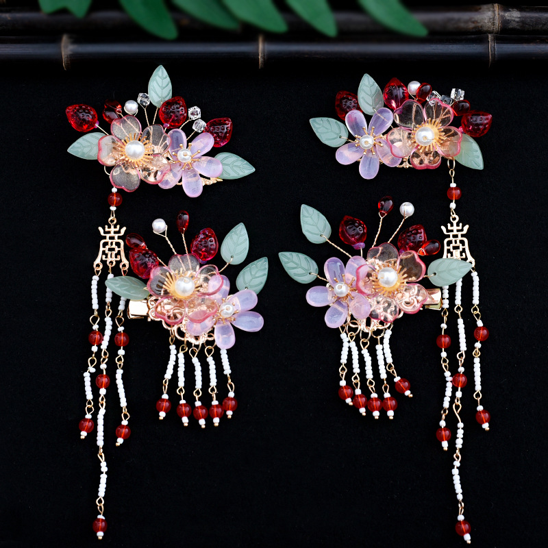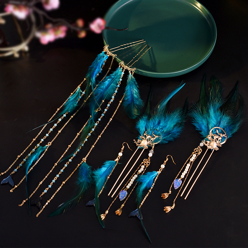 골동품 Hanfu 액세서리 슈퍼 요정 머리핀 세트 술 머리핀 모자 단계별 머리핀 고대 의류 액세서리 Hanfu 헤어 액세서리