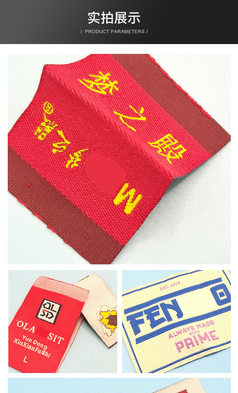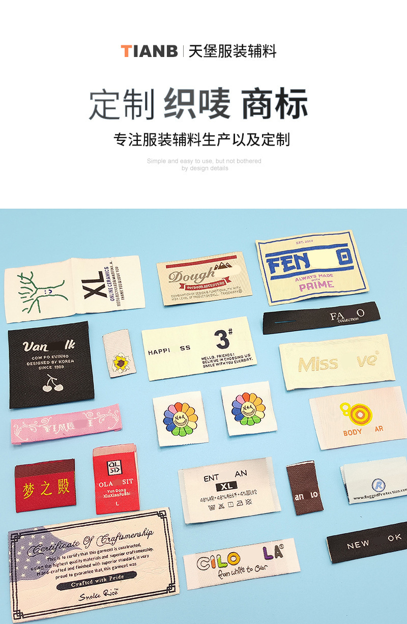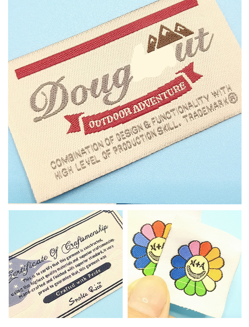 의류 액세서리 제조업체는 고밀도 실로 직조된 라벨, 트렌디한 브랜드 로고 마크, 사이드 마크, 컬러 상표 직조 라벨을 도매 생산합니다.스토어 가기