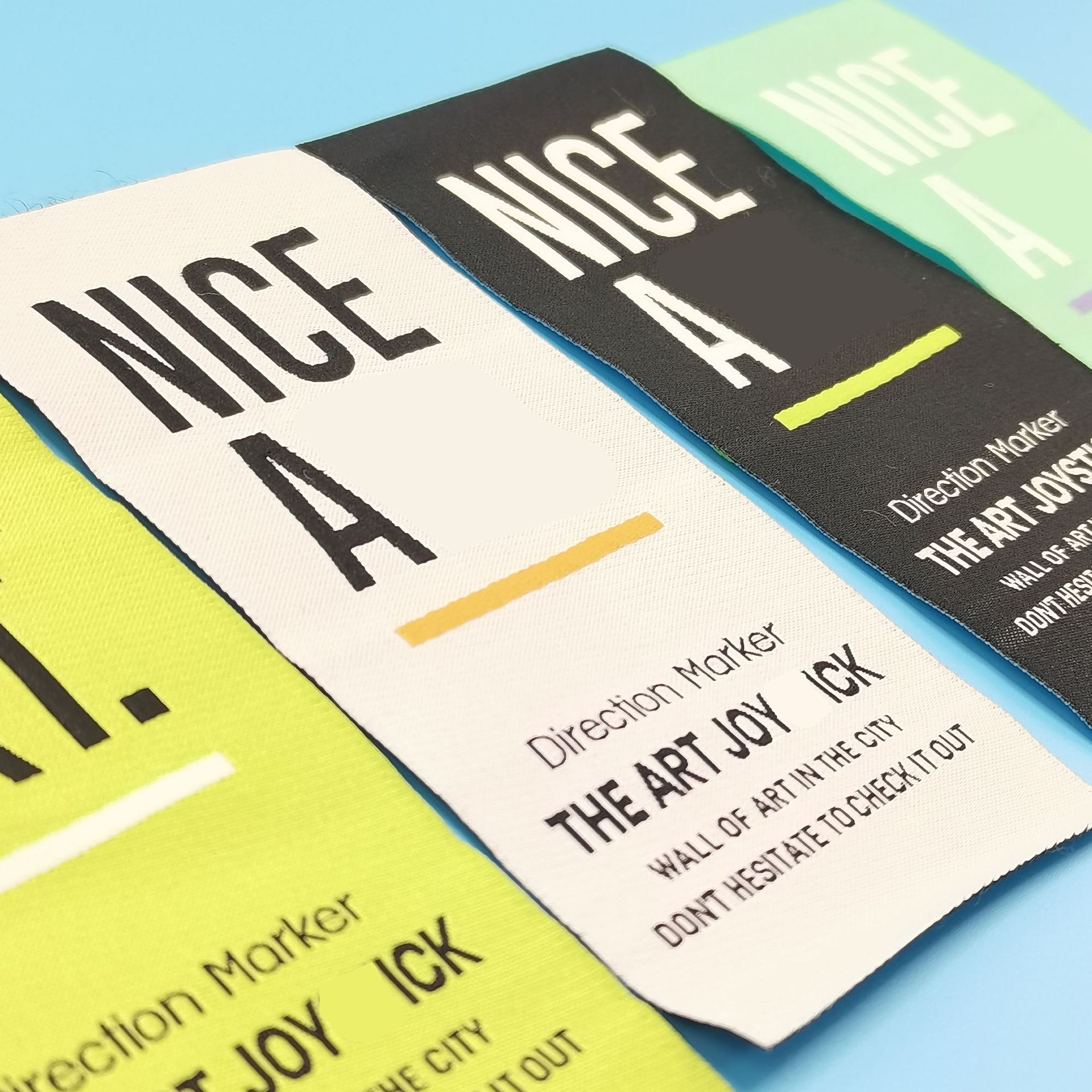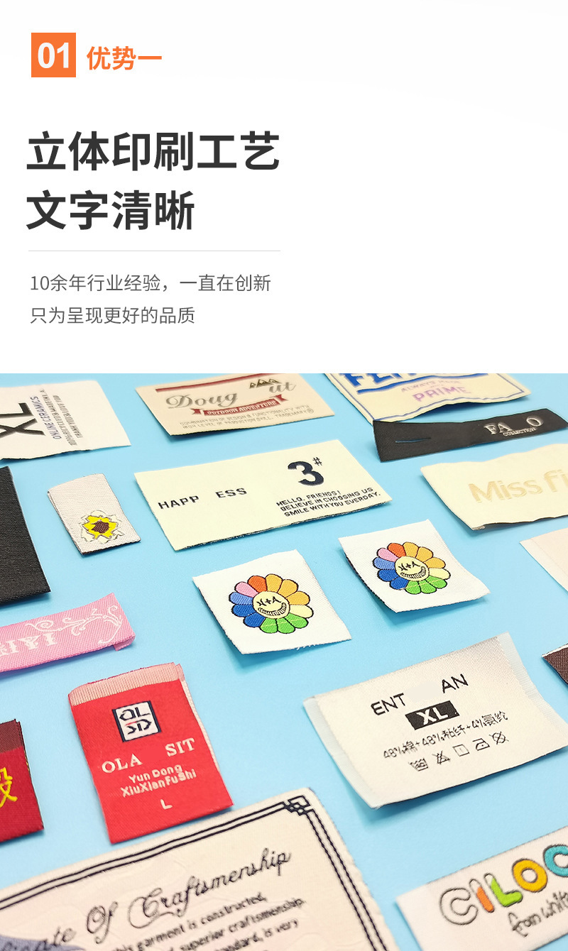 의류 액세서리 제조업체는 고밀도 실로 직조된 라벨, 트렌디한 브랜드 로고 마크, 사이드 마크, 컬러 상표 직조 라벨을 도매 생산합니다.