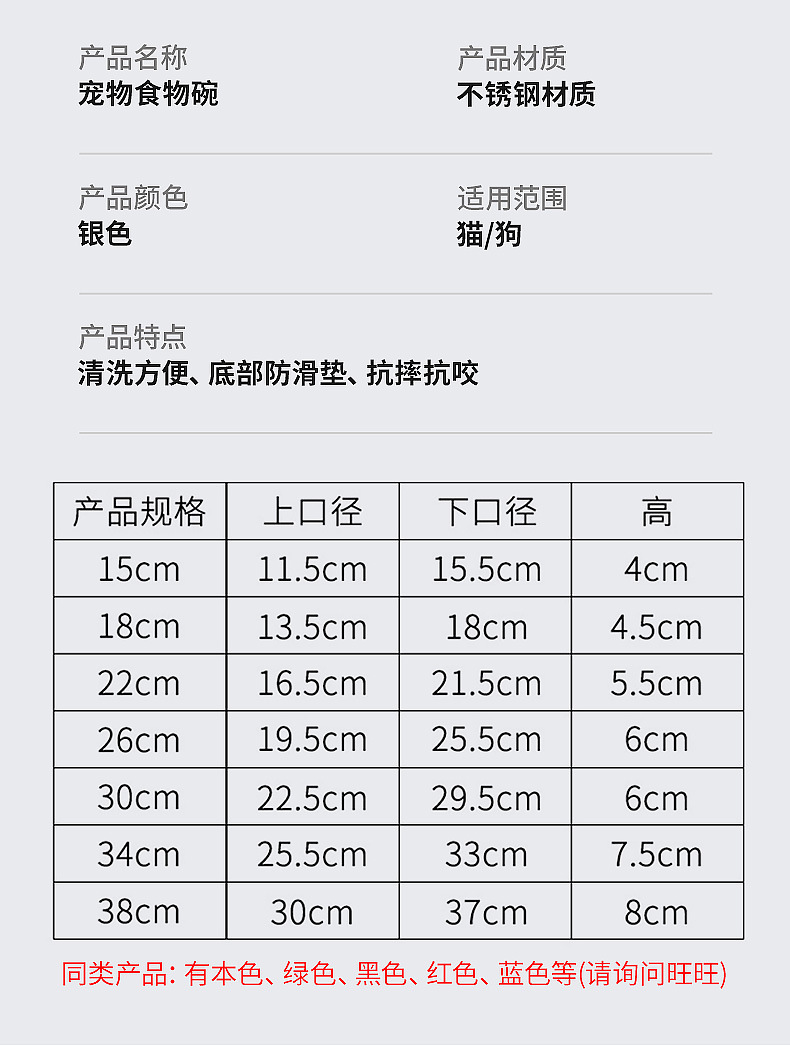 스테인레스 스틸 개 그릇 안티 팁 물린 방지 물기 분지 음소거 미끄럼 방지 고양이 그릇 애완 동물 피더 청소 쉬운 개 분지 도매