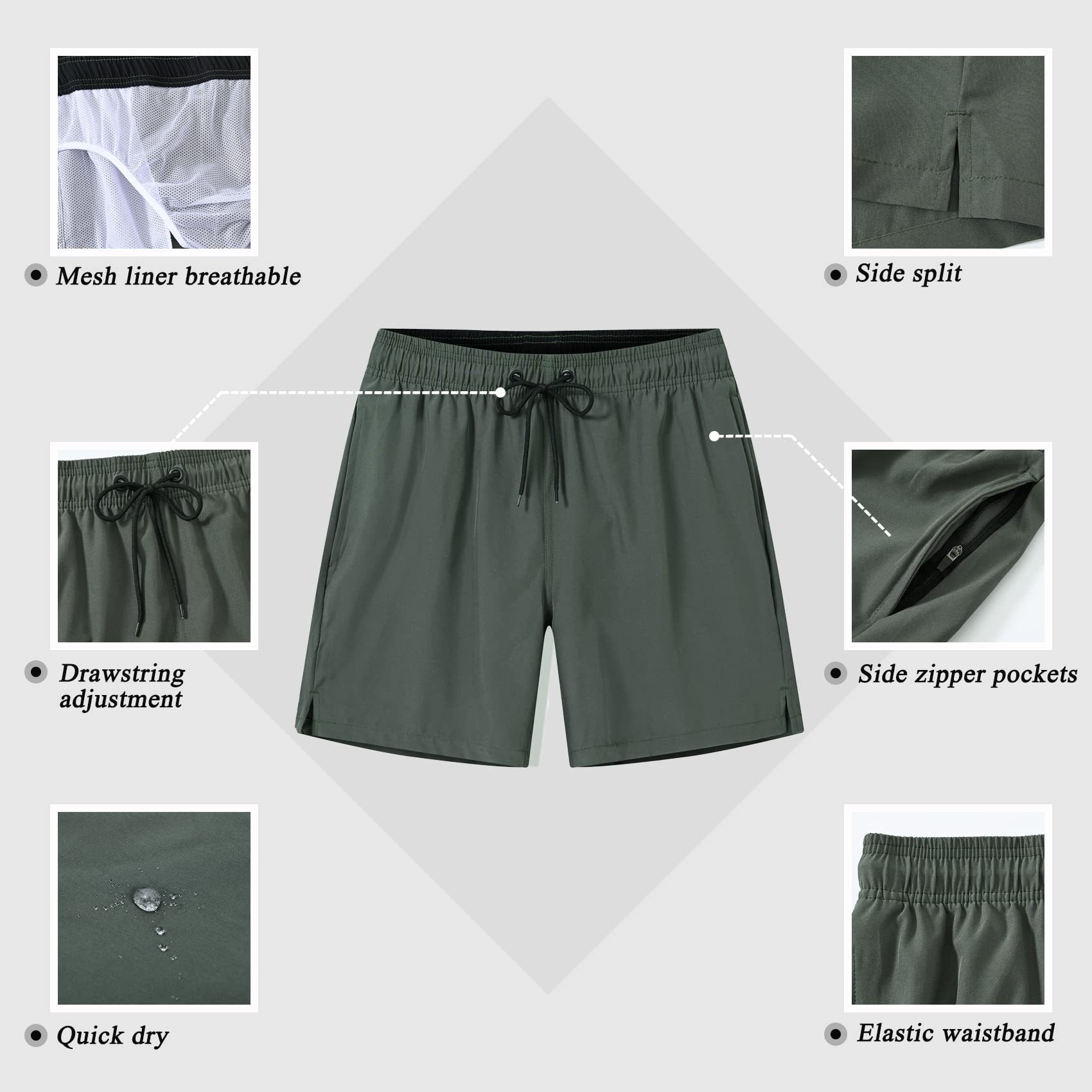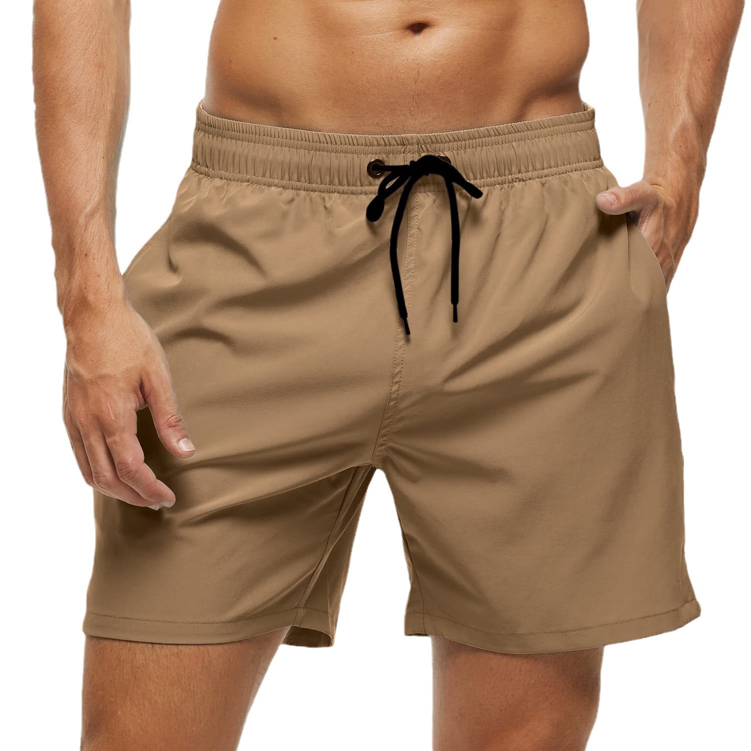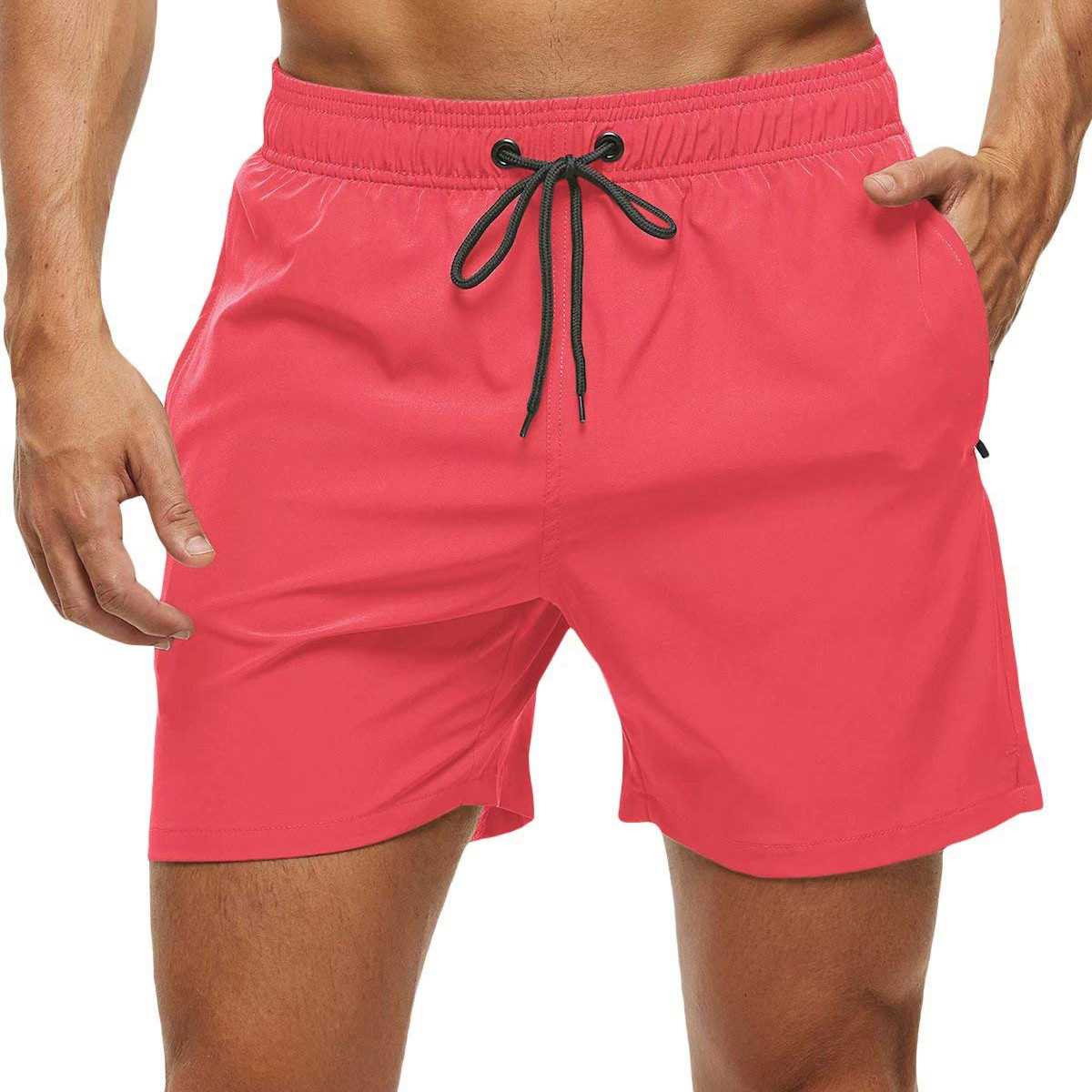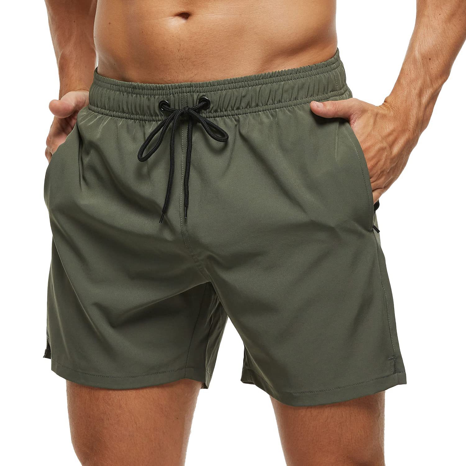 크로스 보더 소원 지퍼 포켓과 메쉬 라인 수영 트렁크가있는 남성용 솔리드 컬러 쿼드 캐주얼 비치 반바지스토어 가기