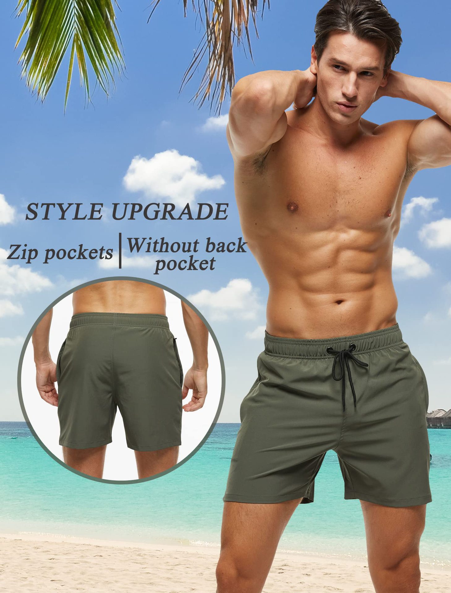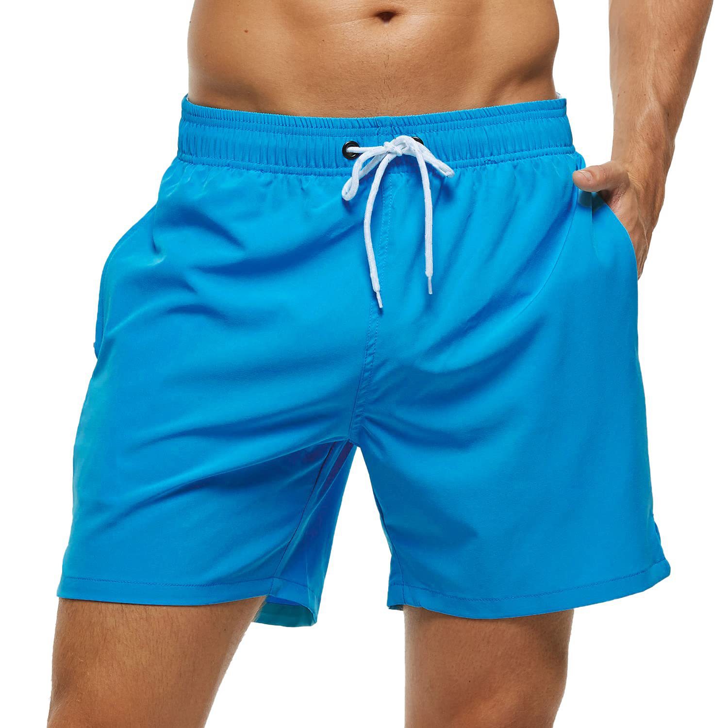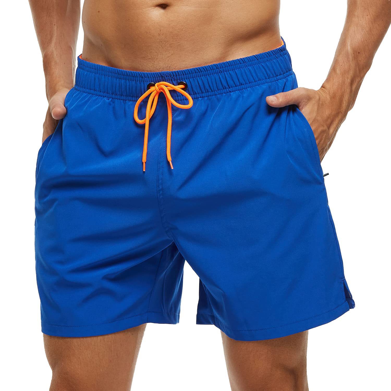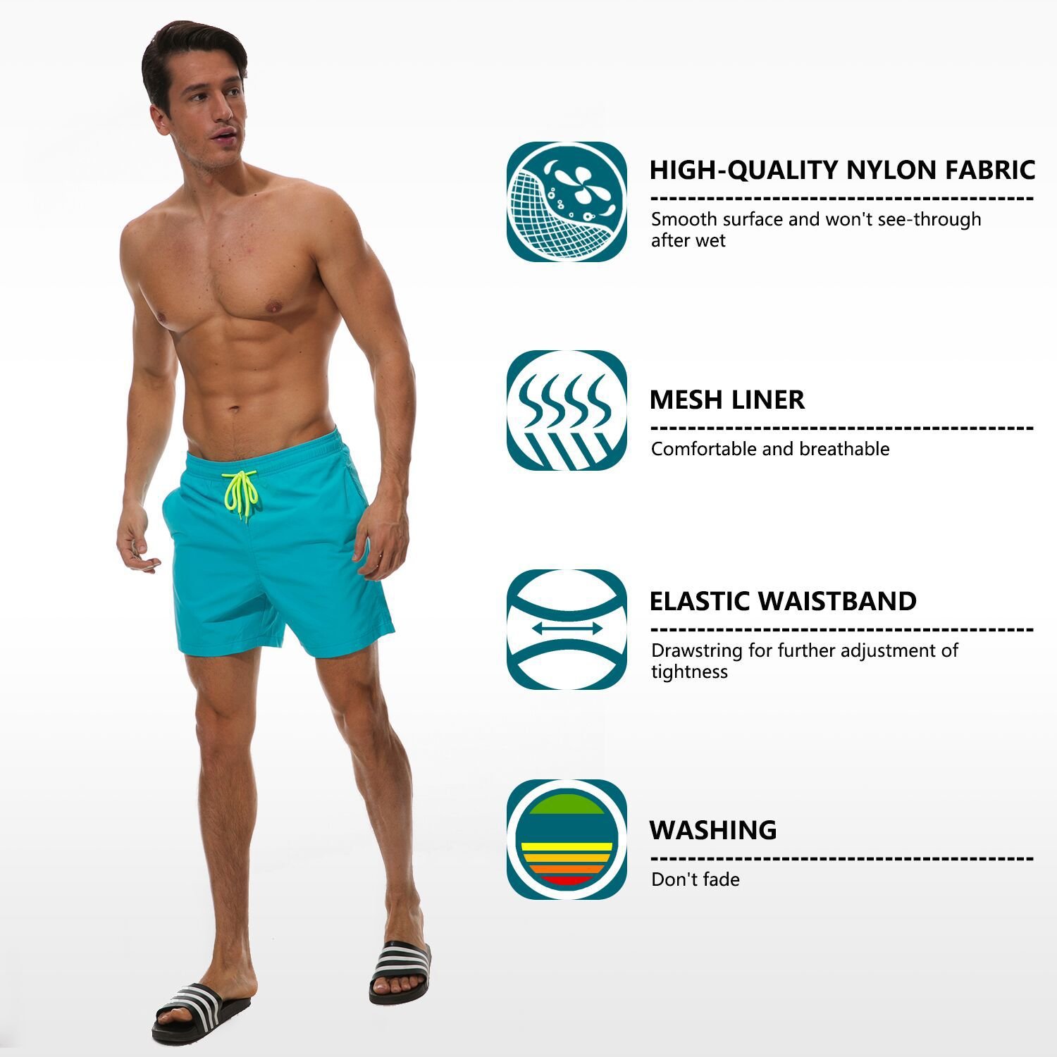 크로스 보더 소원 지퍼 포켓과 메쉬 라인 수영 트렁크가있는 남성용 솔리드 컬러 쿼드 캐주얼 비치 반바지스토어 가기