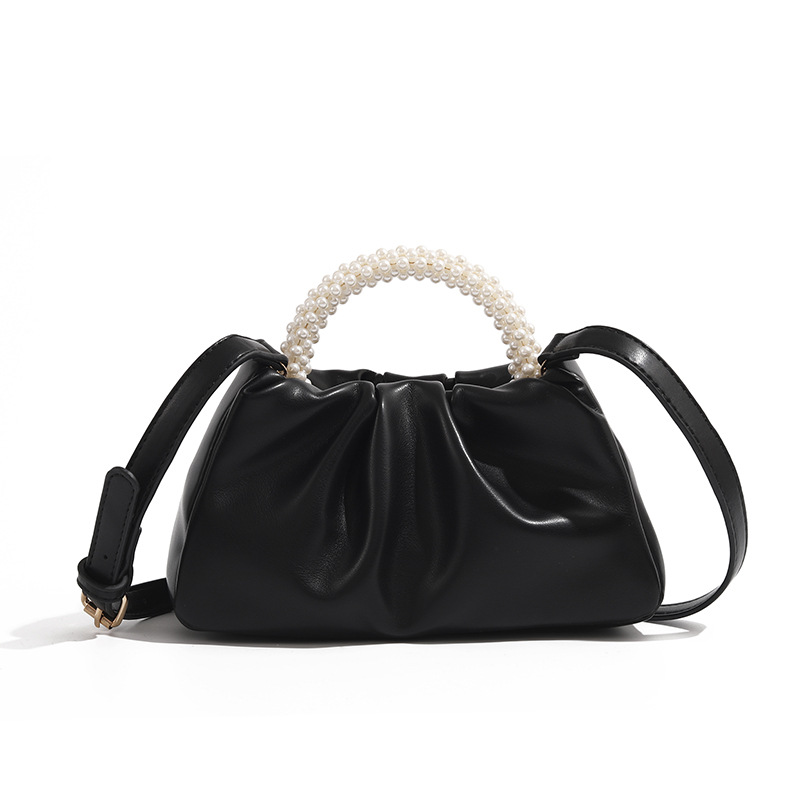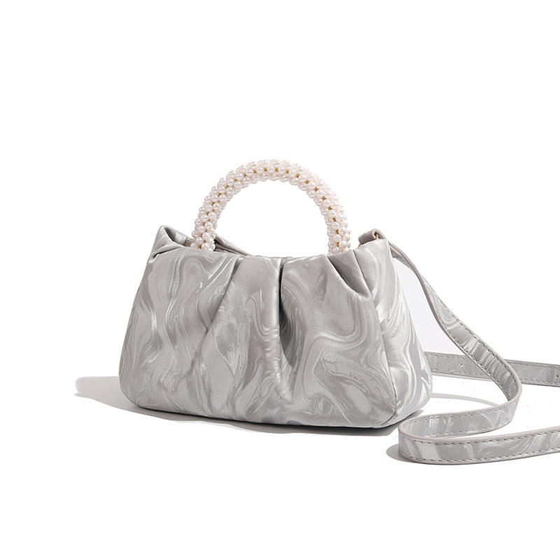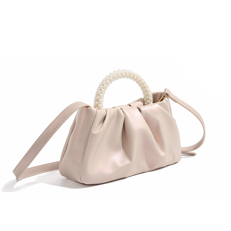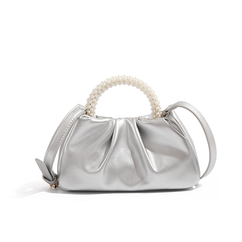 달콤한 소녀 진주 가방 핸드백 여성 패션 모든 매치 플리츠 크로스 바디 클라우드 백 미니 휴대 전화 작은 가방