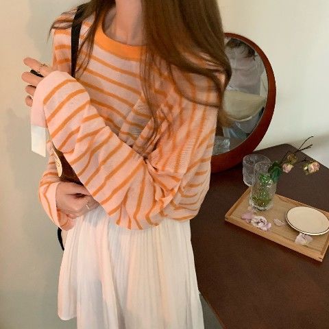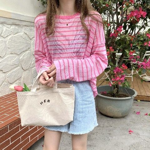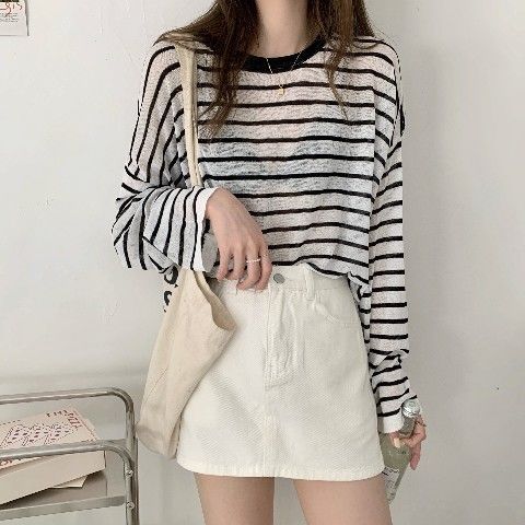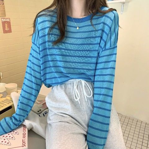 2025년 여름 새로운 한국 스타일 루즈하고 패셔너블하며 다재다능한 얇은 스웨터 티셔츠 여성용 긴팔 풀오버 블라우스 탑스토어 가기