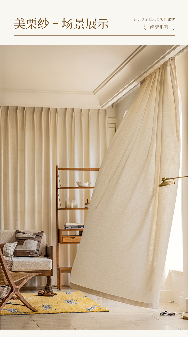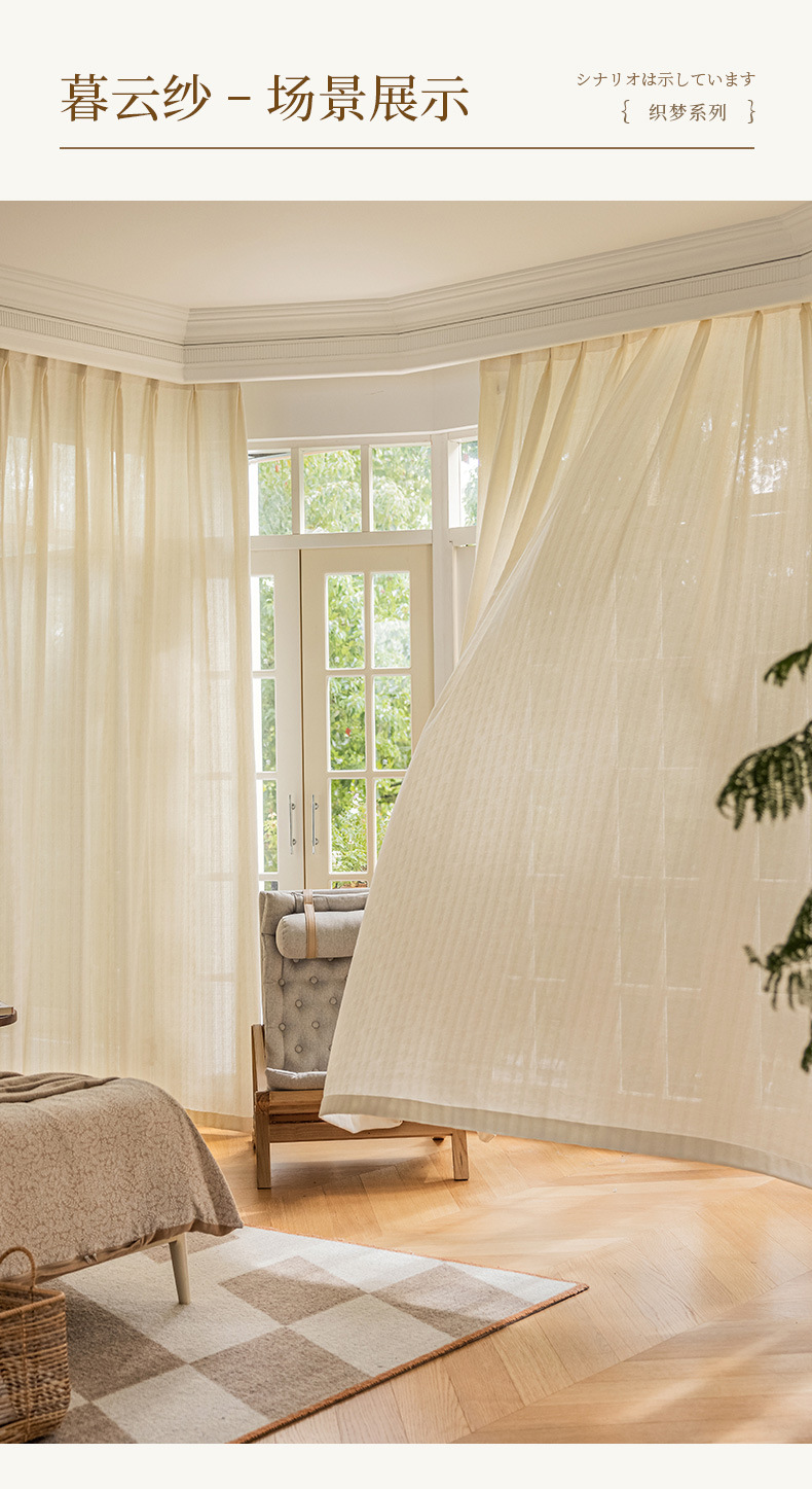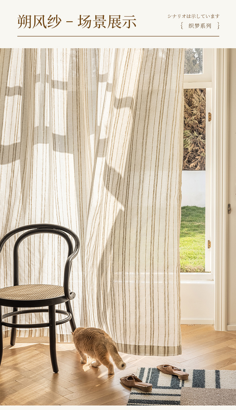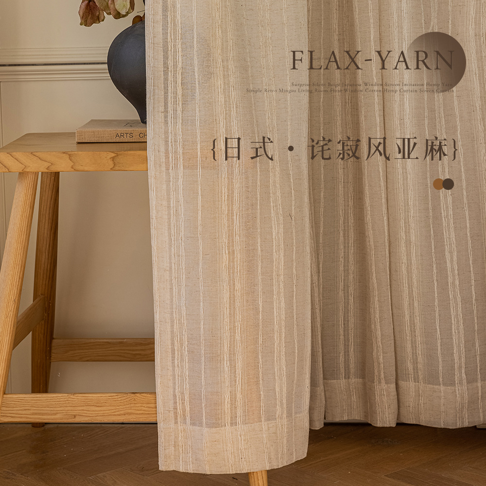 일본식 린넨, 면 및 린넨 밀크 티 거즈 커튼 투명하고 불투명 한 침실 커튼 통나무 바람 창 스크린 거실 발코니 베이 창스토어 가기