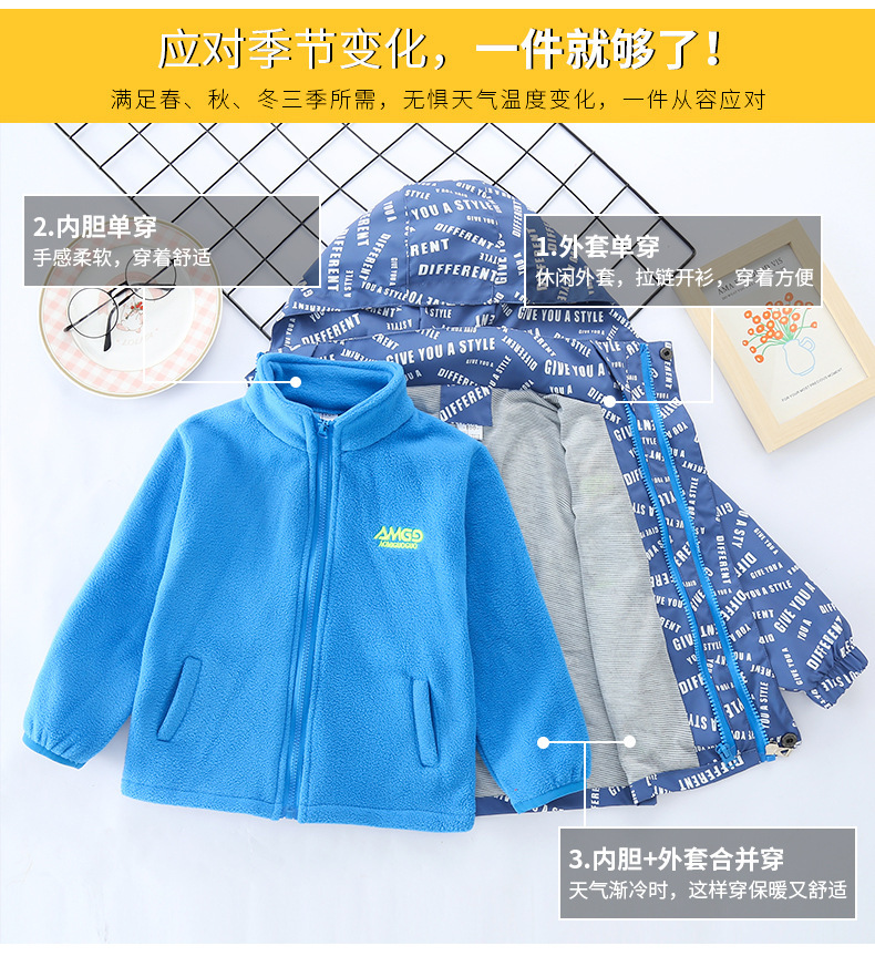 남아 러쉬 의류 3-in-one 분리형 기모 두꺼운 트렌치 코트 가을과 겨울 2023 새로운 한국 스타일 어린이 코트스토어 가기