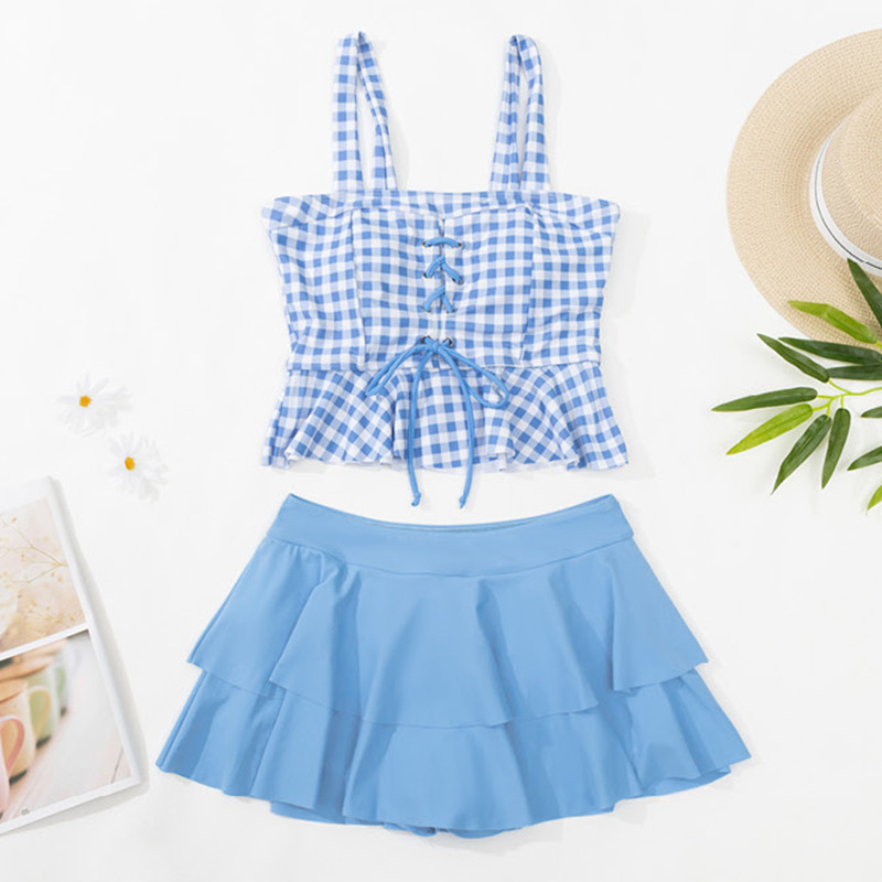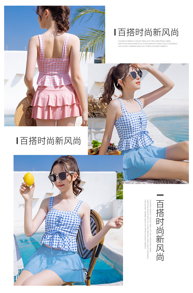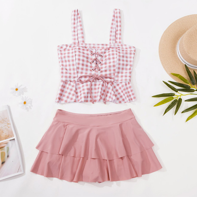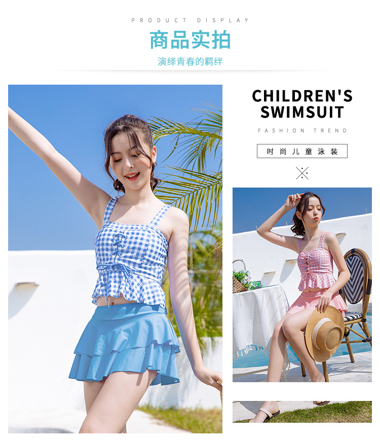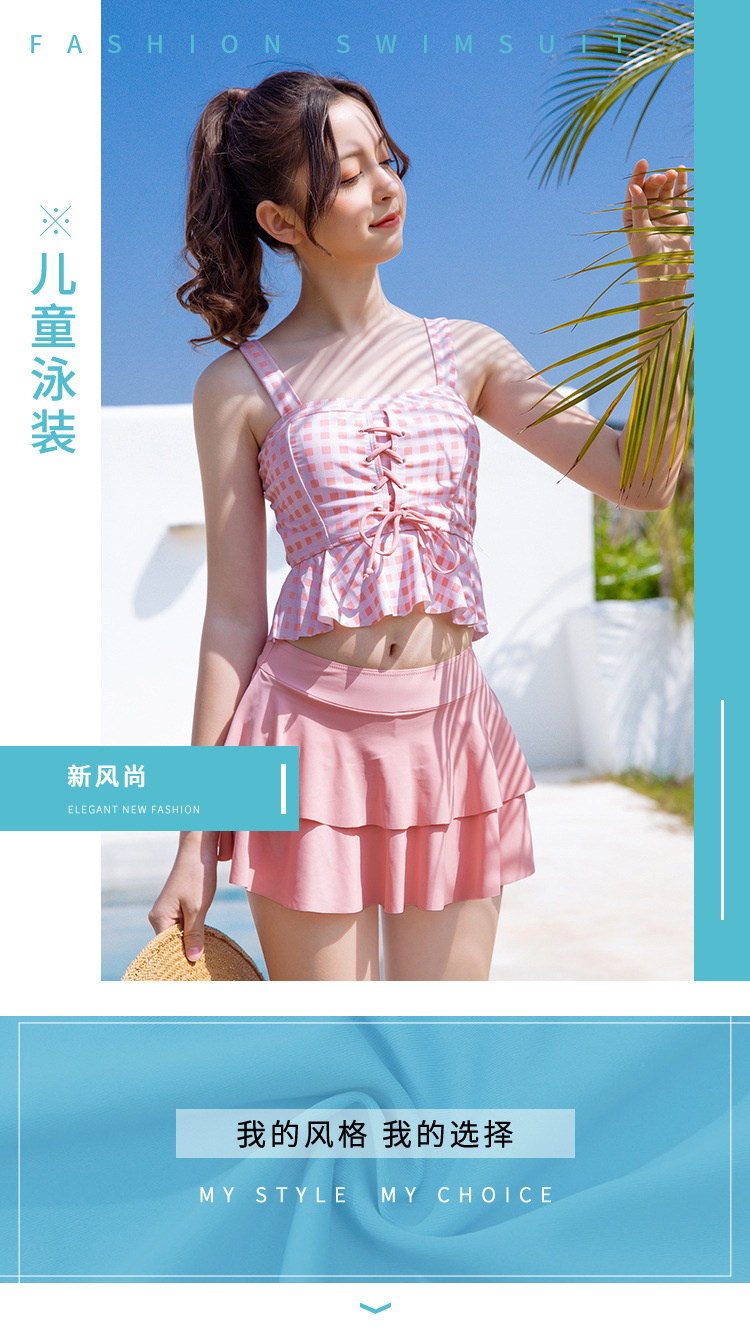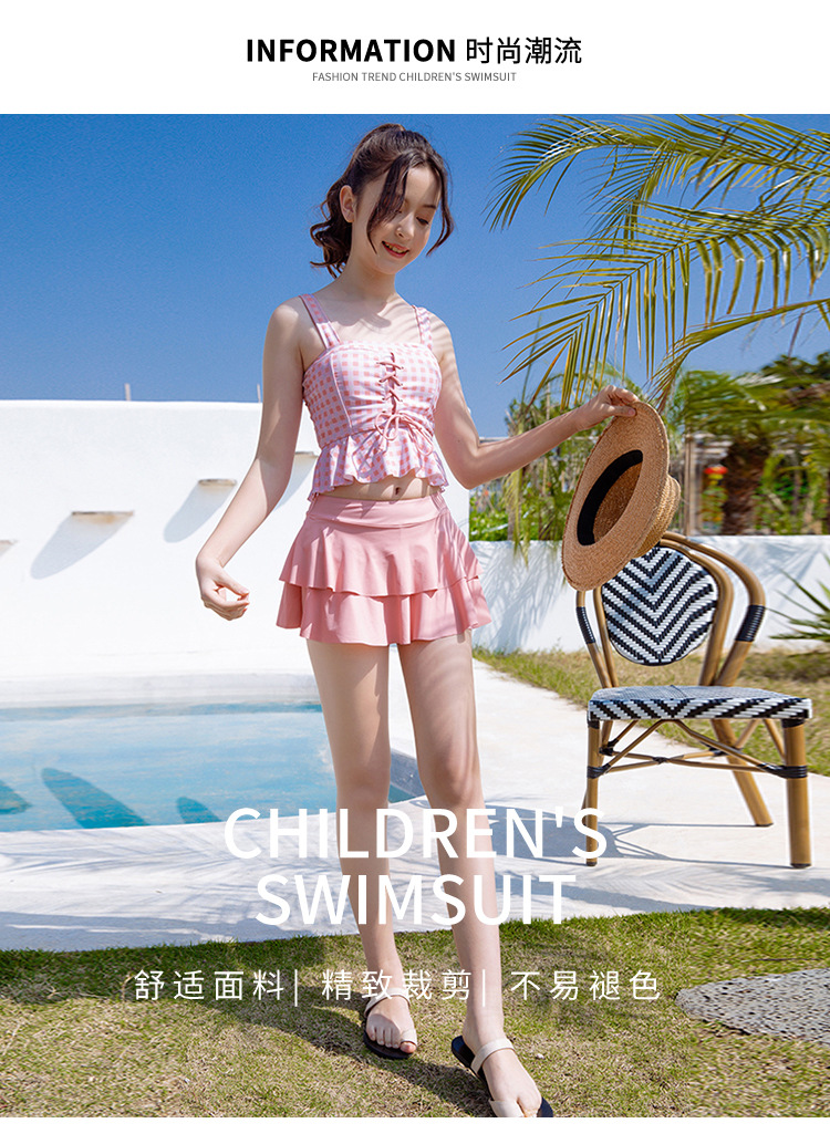 핑크색 여아 수영복, 중학생 이상, 학생용, 보수적인 스커트형, 사각팬티, 분리형, 온천용, 한국 스타일, 상큼한 스타일