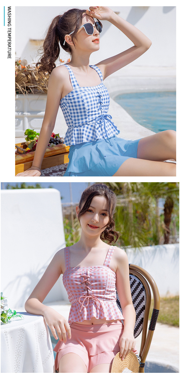 핑크색 여아 수영복, 중학생 이상, 학생용, 보수적인 스커트형, 사각팬티, 분리형, 온천용, 한국 스타일, 상큼한 스타일스토어 가기