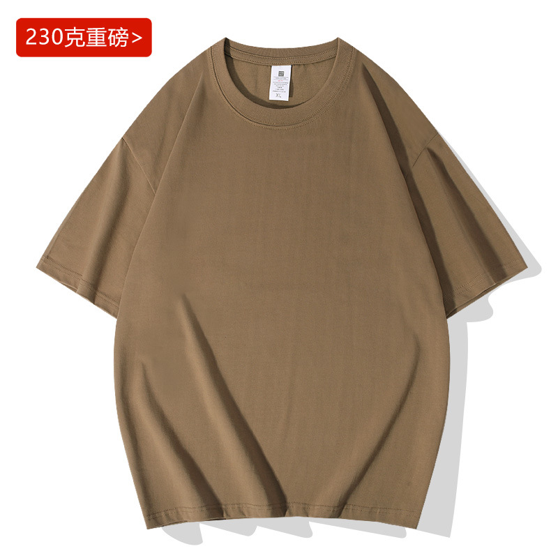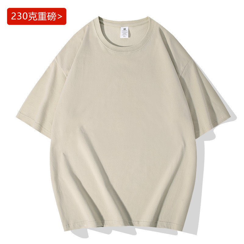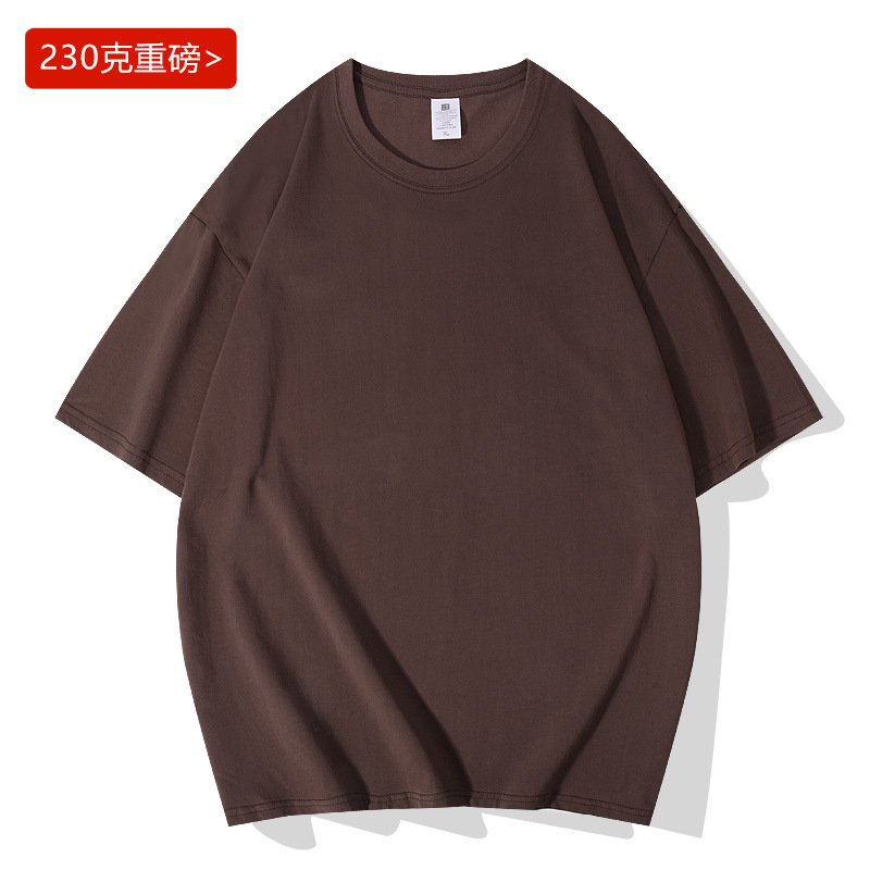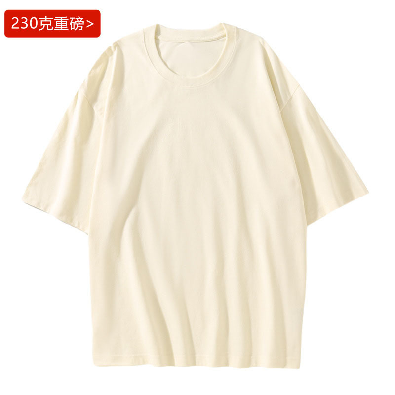 헤비 230g 캐주얼 루즈한 숄더 크루넥 반팔 티셔츠 남성용 최신 유행 남성 홍콩 스타일 티셔츠 기본 의류스토어 가기