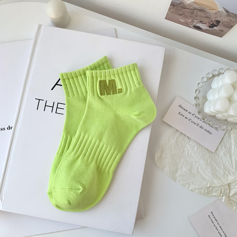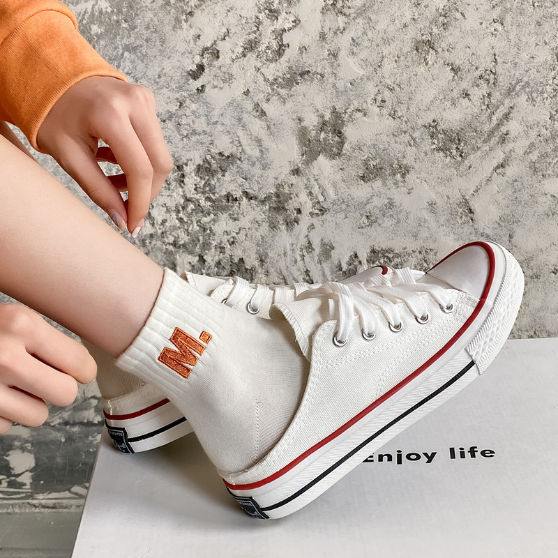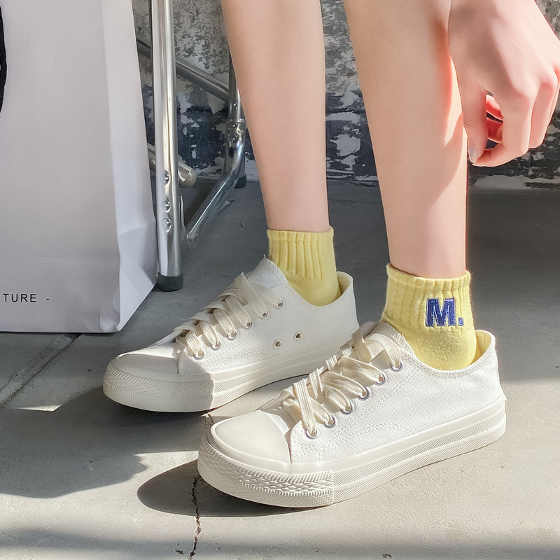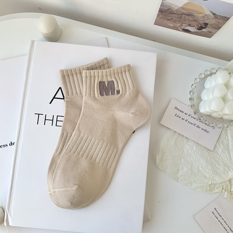 25 봄 가을 양말 여학생 스포츠 M 자수 중목 양말 봄 여름용 여성용 짧은 양말 흰색 양말스토어 가기