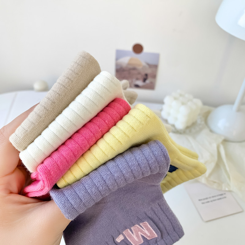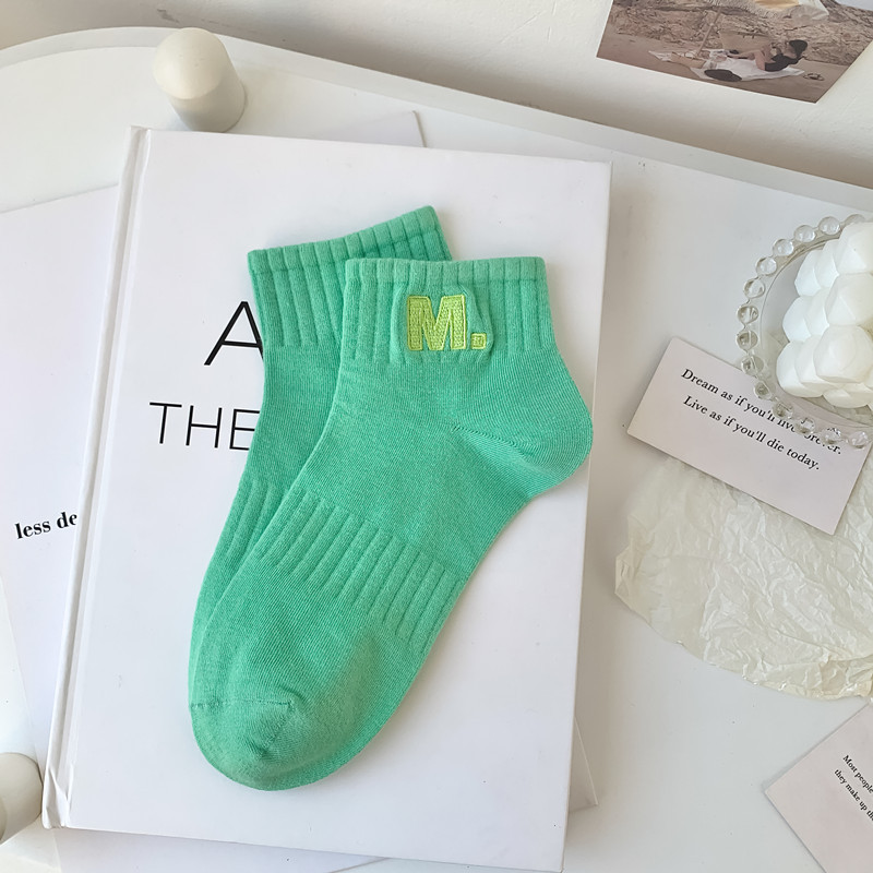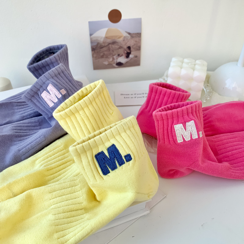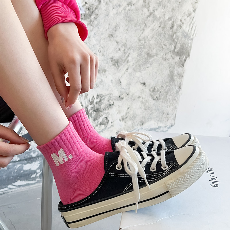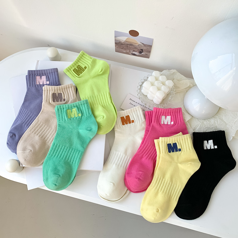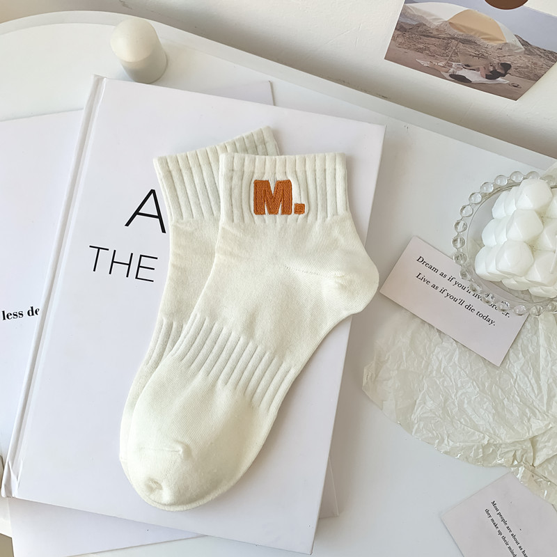 25 봄 가을 양말 여학생 스포츠 M 자수 중목 양말 봄 여름용 여성용 짧은 양말 흰색 양말