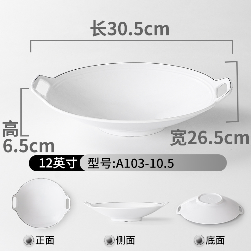 화이트 멜라민 플레이트 모방 도자기 상업 가재 특별 플레이트 창조적 인 이중 귀 플레이트 매운 냄비 플레이트 호텔 디너 플레이트