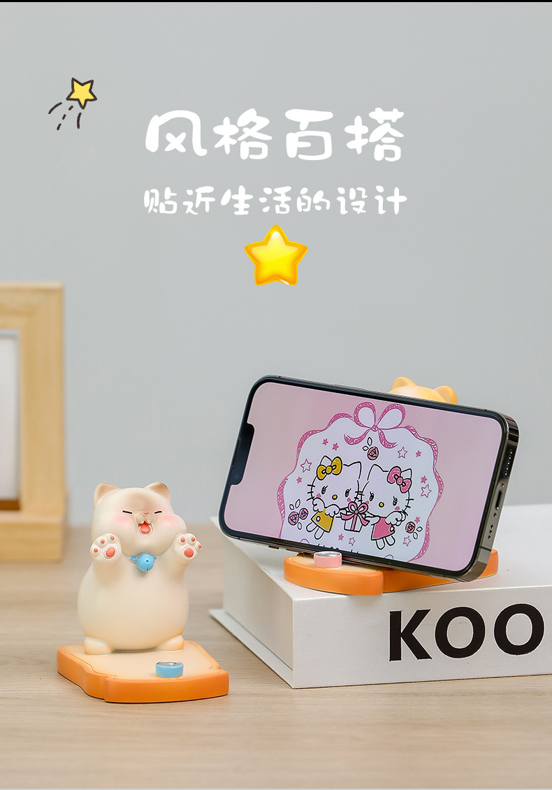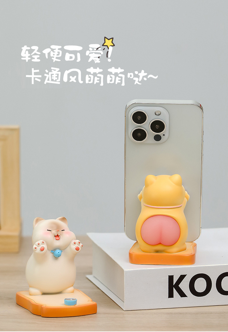 • 고양이 퍼프 휴대 전화 브래킷-오렌지 고양이
