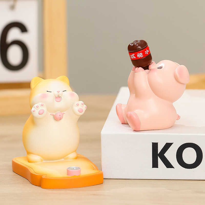 治愈系懒人手机支架摆件猫扑食便签平板支架桌面可爱解压卡通小猪