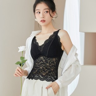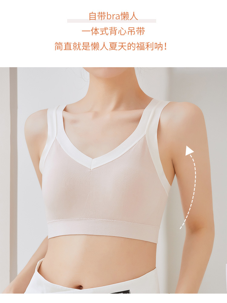 2023简约美背蕾丝花边裹胸一体式乳胶杯清凉冰丝无痕背心