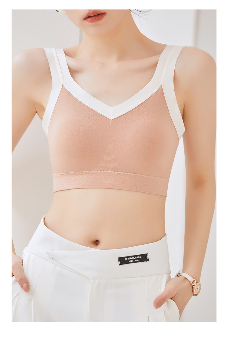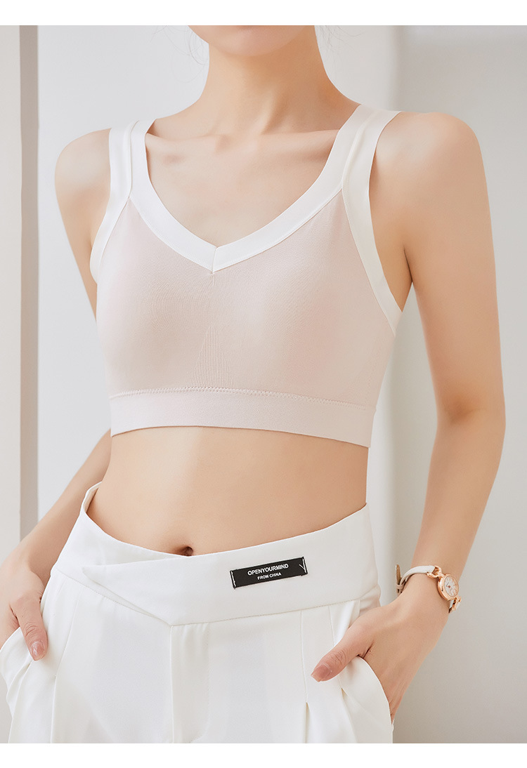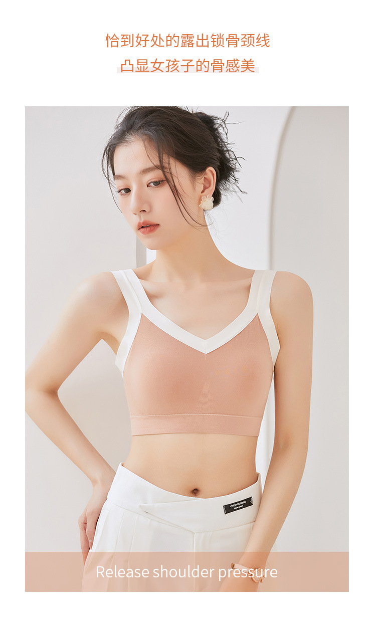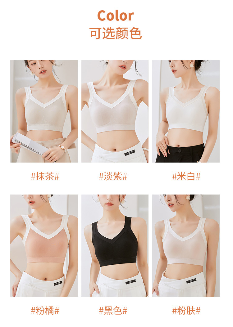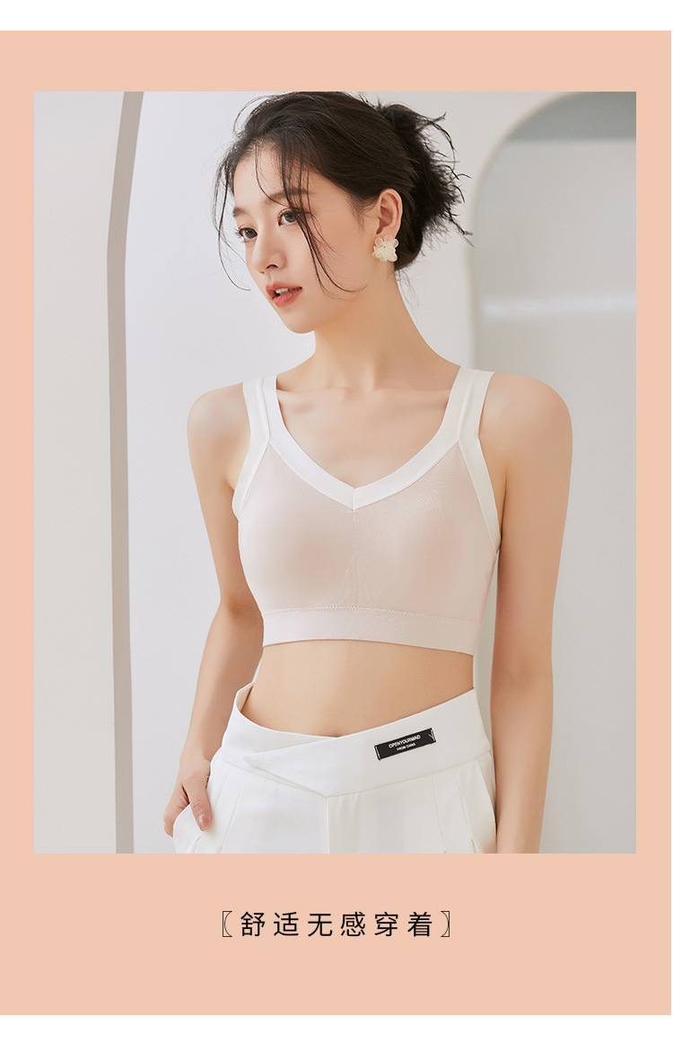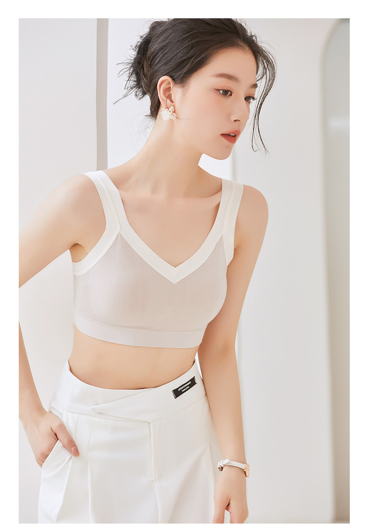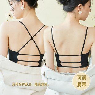 女士吊带新款性感交叉后背固定聚拢乳胶杯冰丝透气无痕裹胸