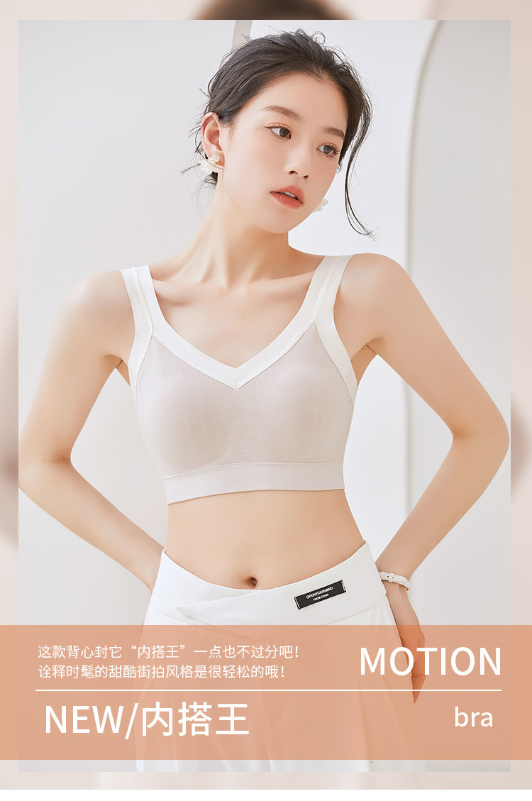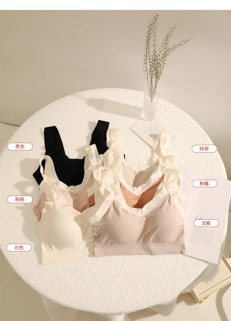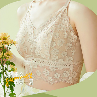 爆款新品内衣法式柔软蕾丝美背固定乳胶杯吊带内搭舒适无钢圈裹胸