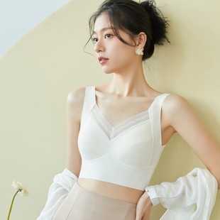 女夏季冰丝无痕轻奢背心法式蕾丝透气固定乳胶聚拢防走光内搭
