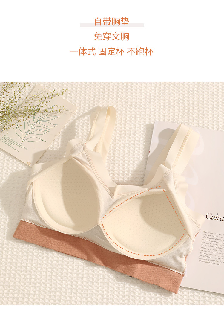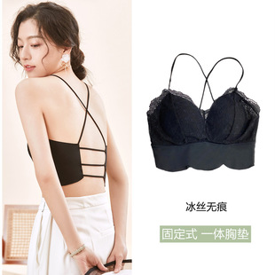 春夏轻奢蕾丝一片式清凉冰丝美背固定一体乳胶杯性感交叉双肩带女