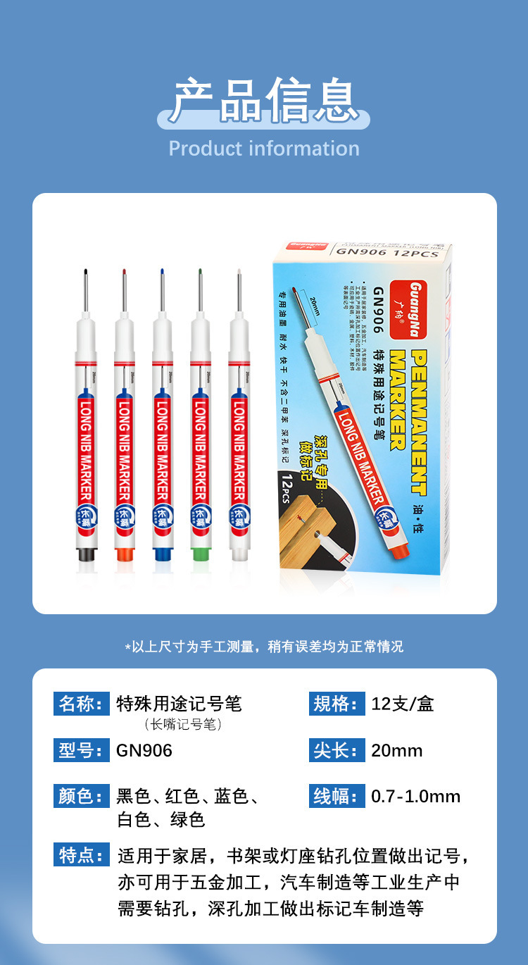 광나 GN906 긴 입 타입 페인트 펜 유성 마커 펜 산업용 마커 펜 2cm 펜촉 전기 목공 마크