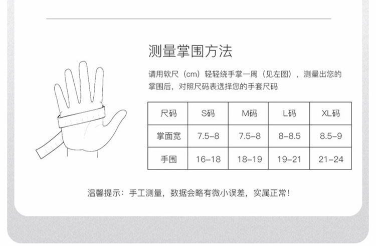 • L (큰 손 숙녀 일반 남성 손바닥 둘레 19-20cm)