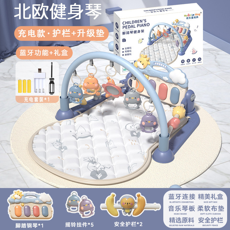 발 피아노 크로스 보더 신생아 피트니스 랙 아기 조기 교육 음악 조명 게임 담요 발 피아노 장난감스토어 가기