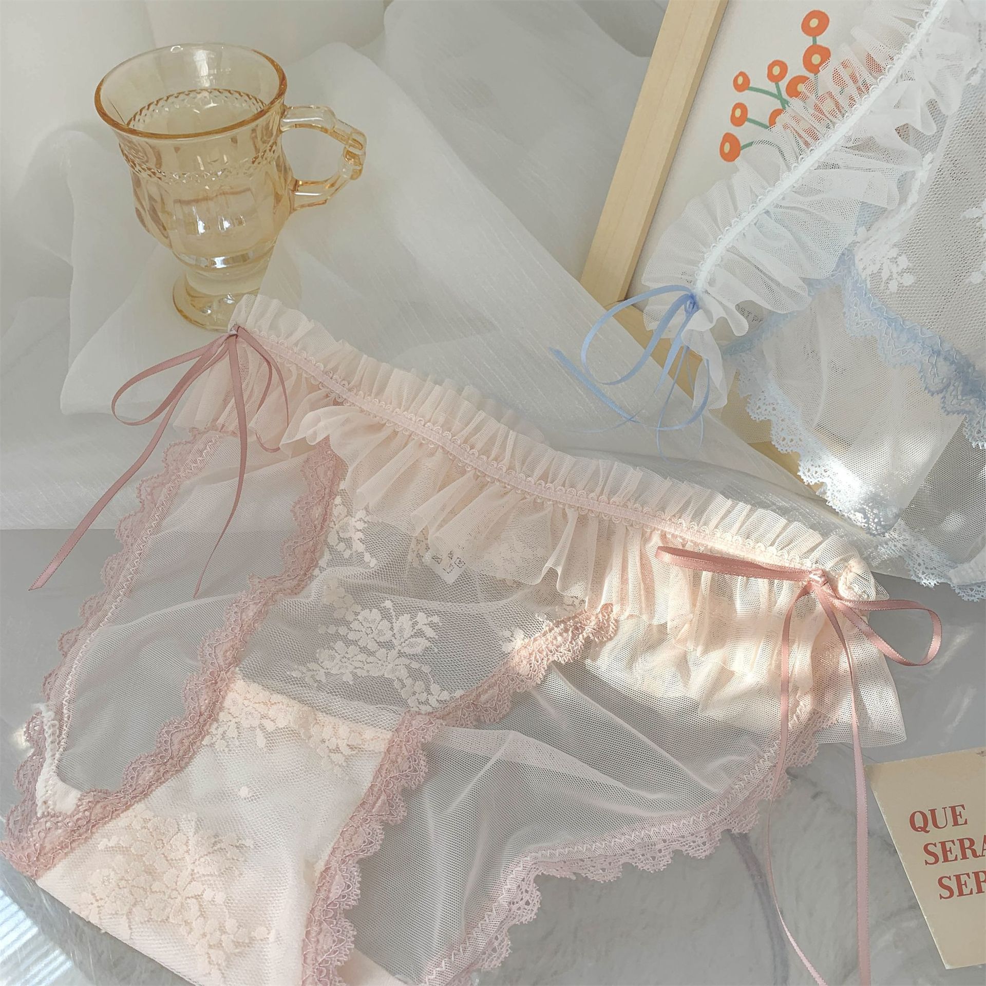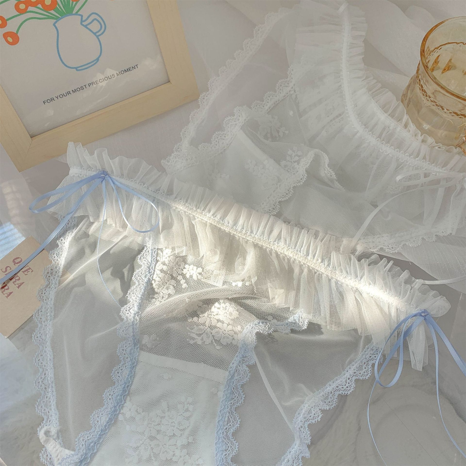 순수한 흰 우유 소금 ~ 다진 남자의 달콤한 메쉬 플라이 에지 섹시한 여자의 속옷 여름 얇은 섹시한 레이스 순면 팬티