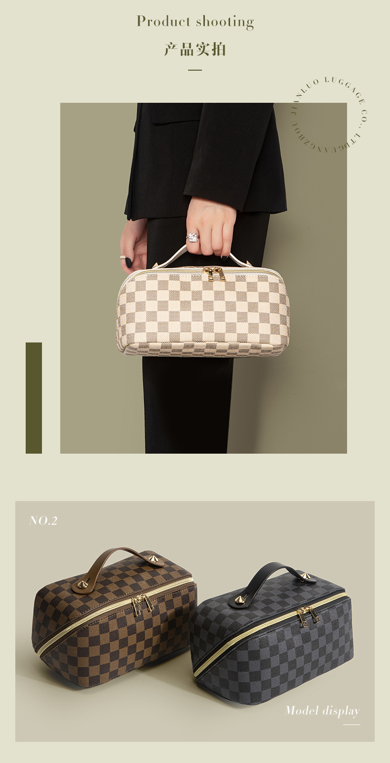 새로운 격자 무늬 노안 화장품 가방 대용량 고색상 워시 화장품 편리한 휴대용 보관 가방 도매스토어 가기