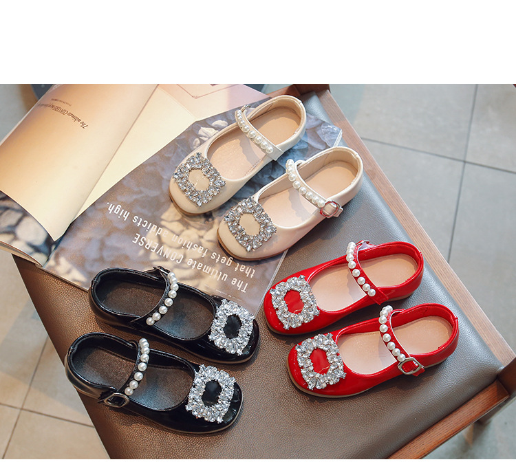 어린이 공주 신발 2025 봄 가을 신상 여아용 크리스탈 진주 단화 아기 레트로 블랙 가죽 신발스토어 가기
