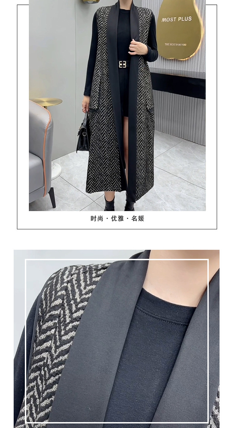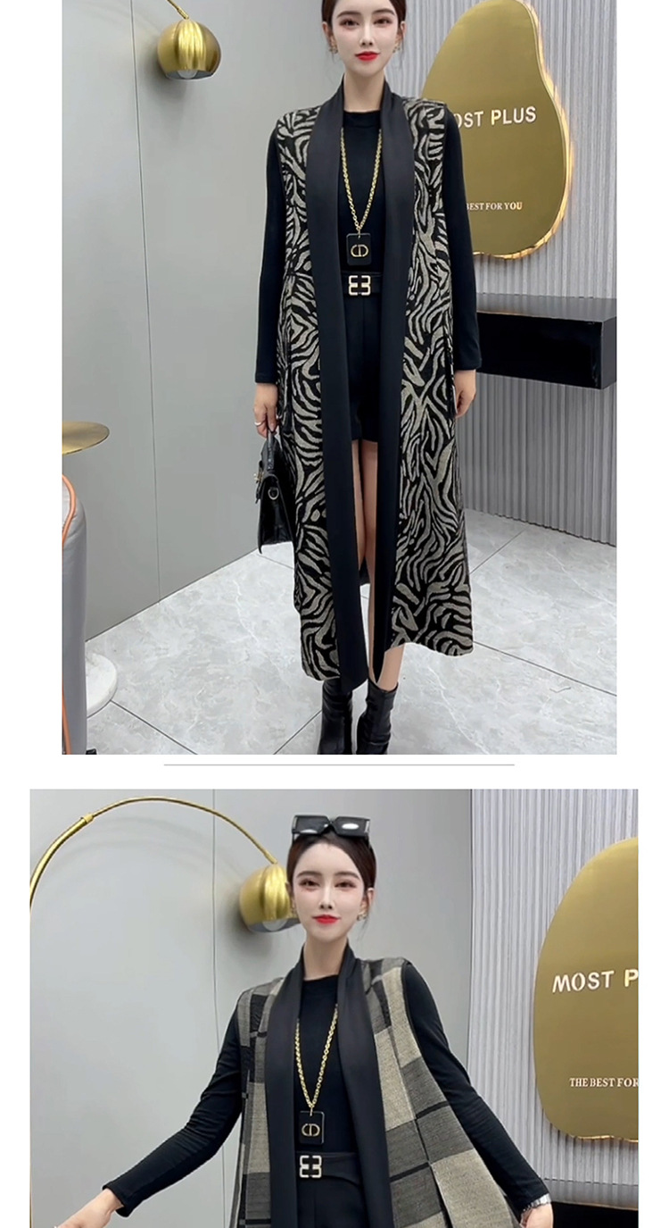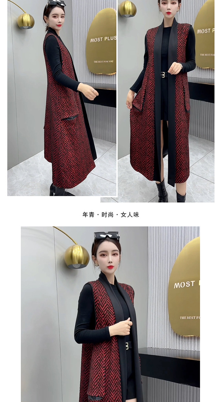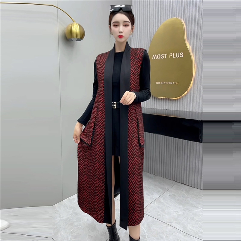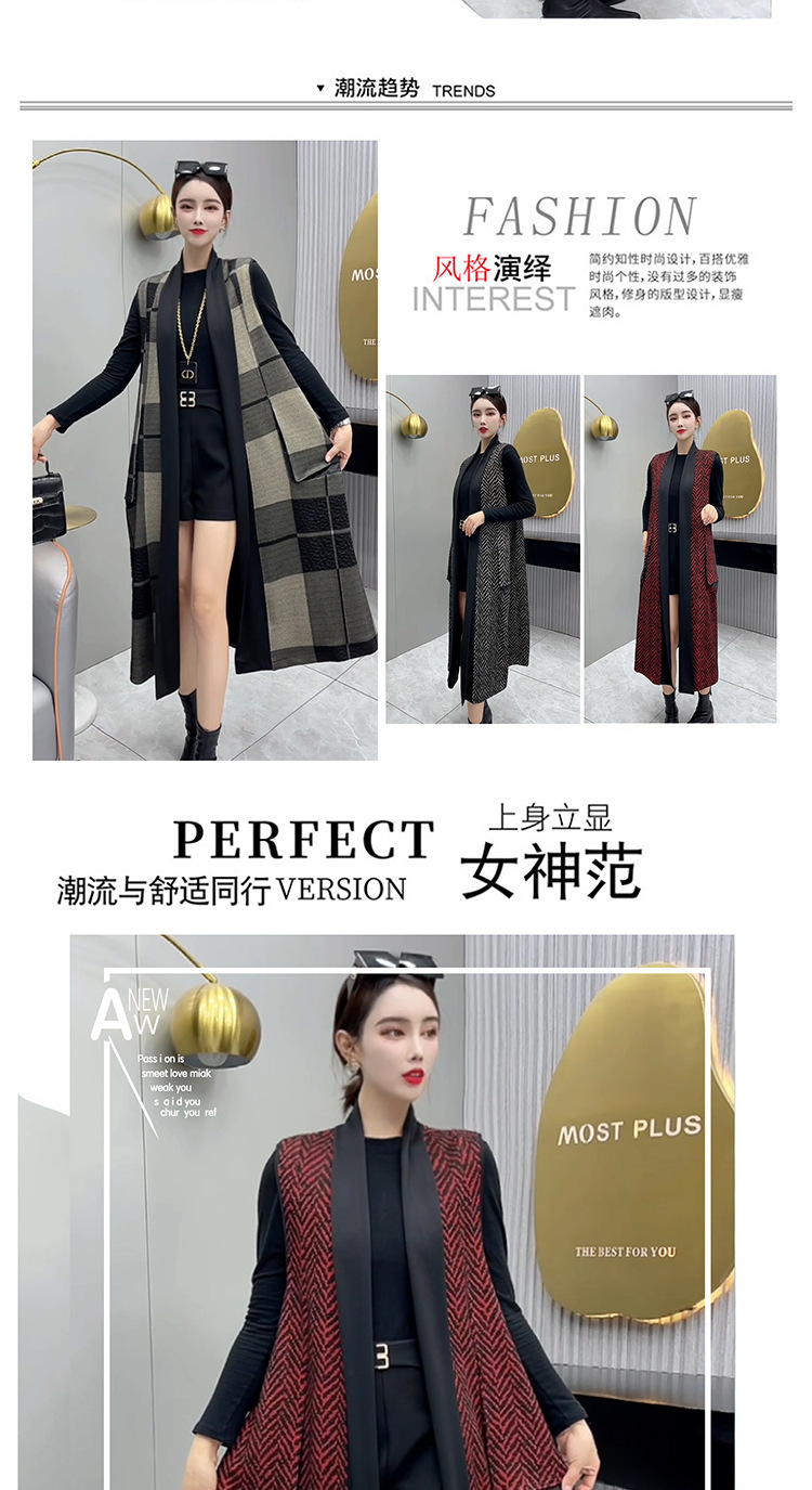 윈드 브레이커 조끼 여성의 가을 중간 길이 아우터 카디건 2022 새로운 가을과 겨울 긴 조끼 격자 무늬 무릎 위 코트스토어 가기