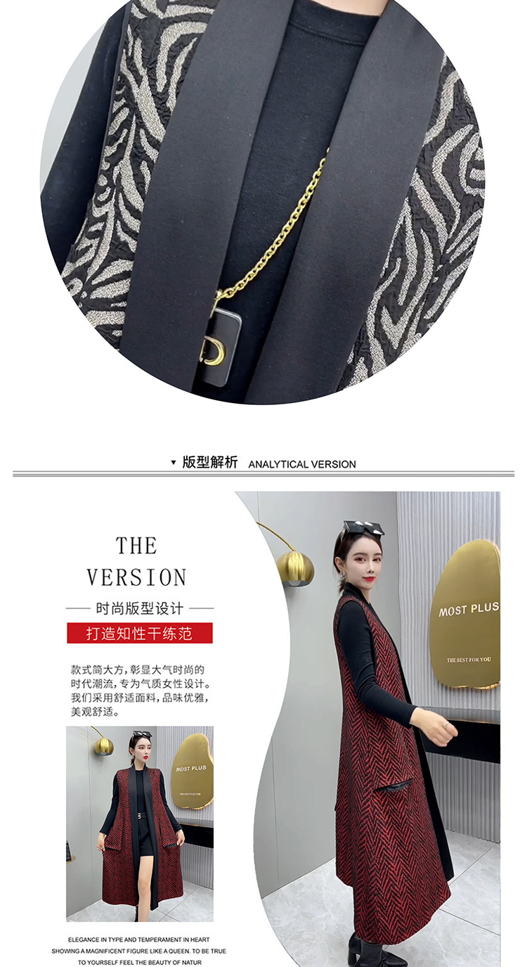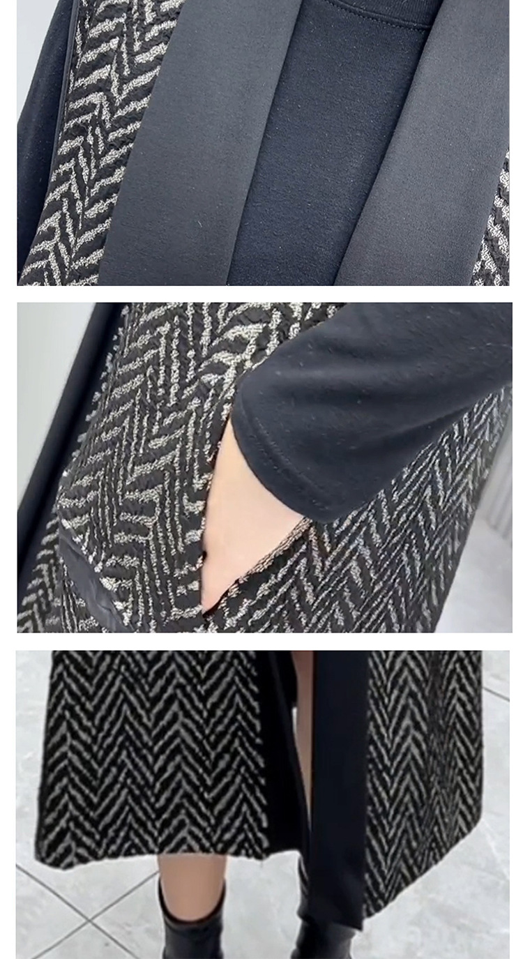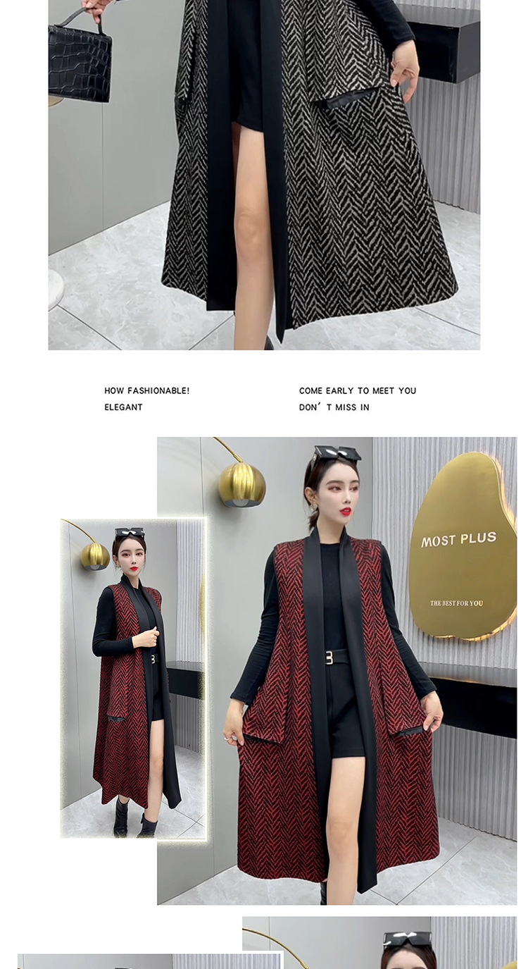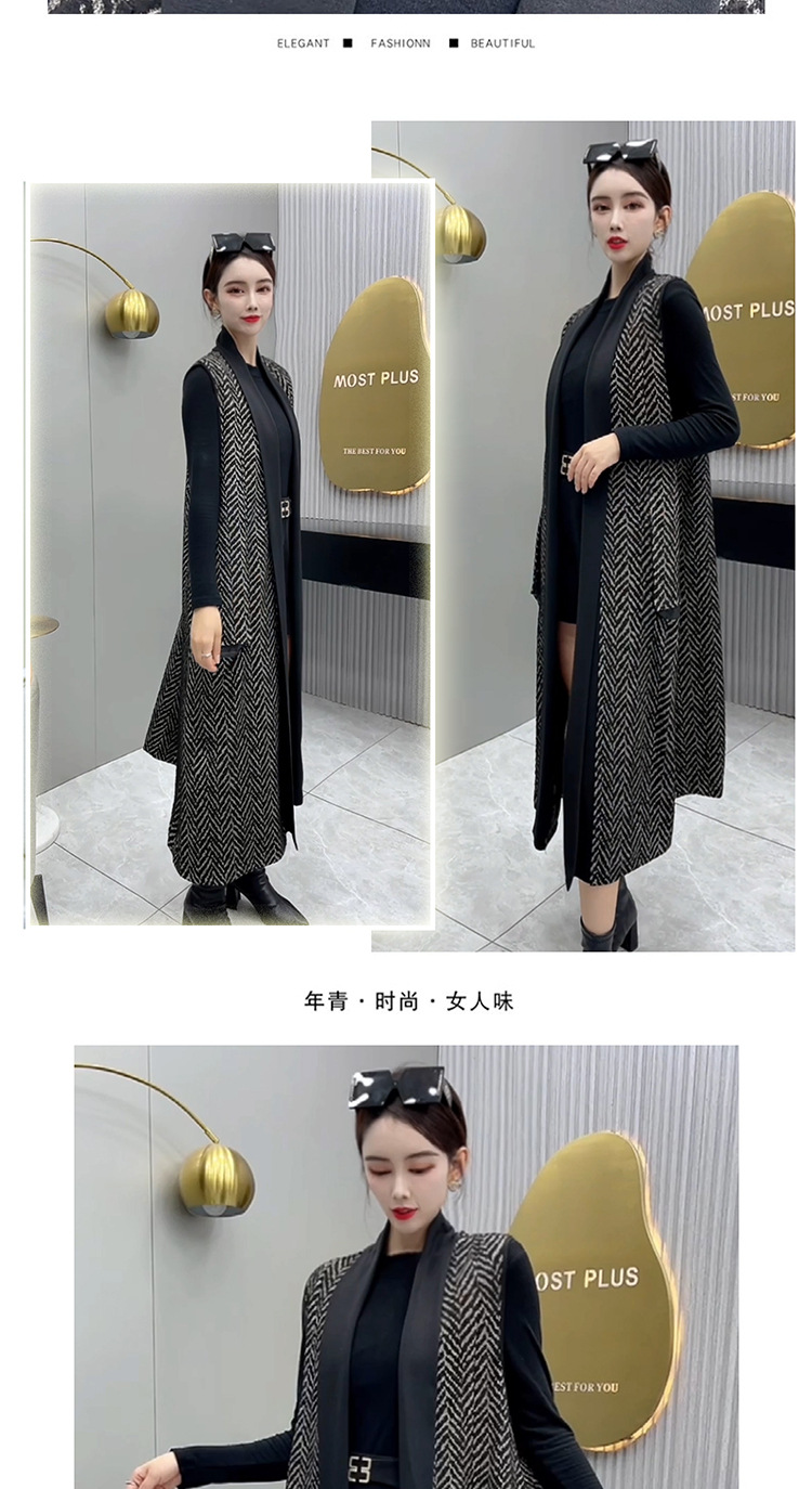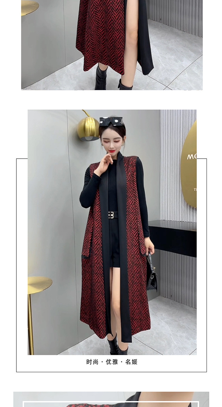 윈드 브레이커 조끼 여성의 가을 중간 길이 아우터 카디건 2022 새로운 가을과 겨울 긴 조끼 격자 무늬 무릎 위 코트스토어 가기