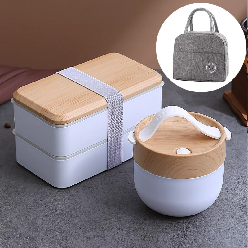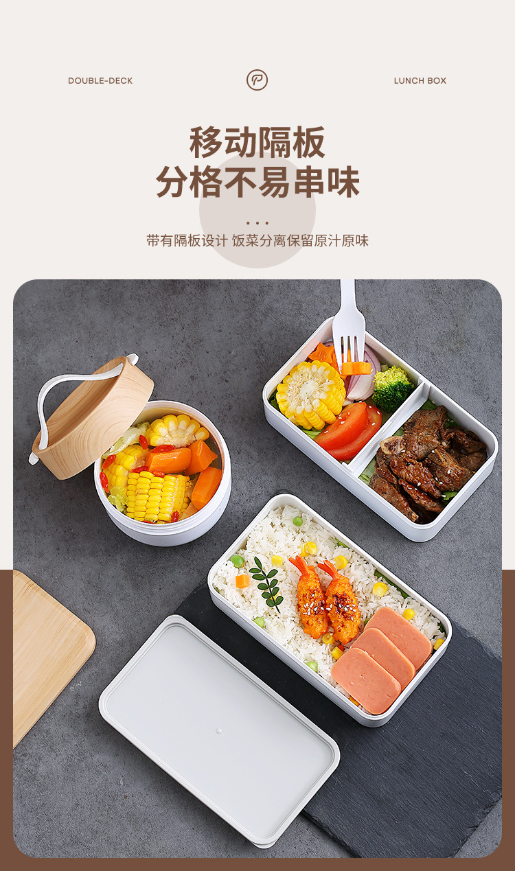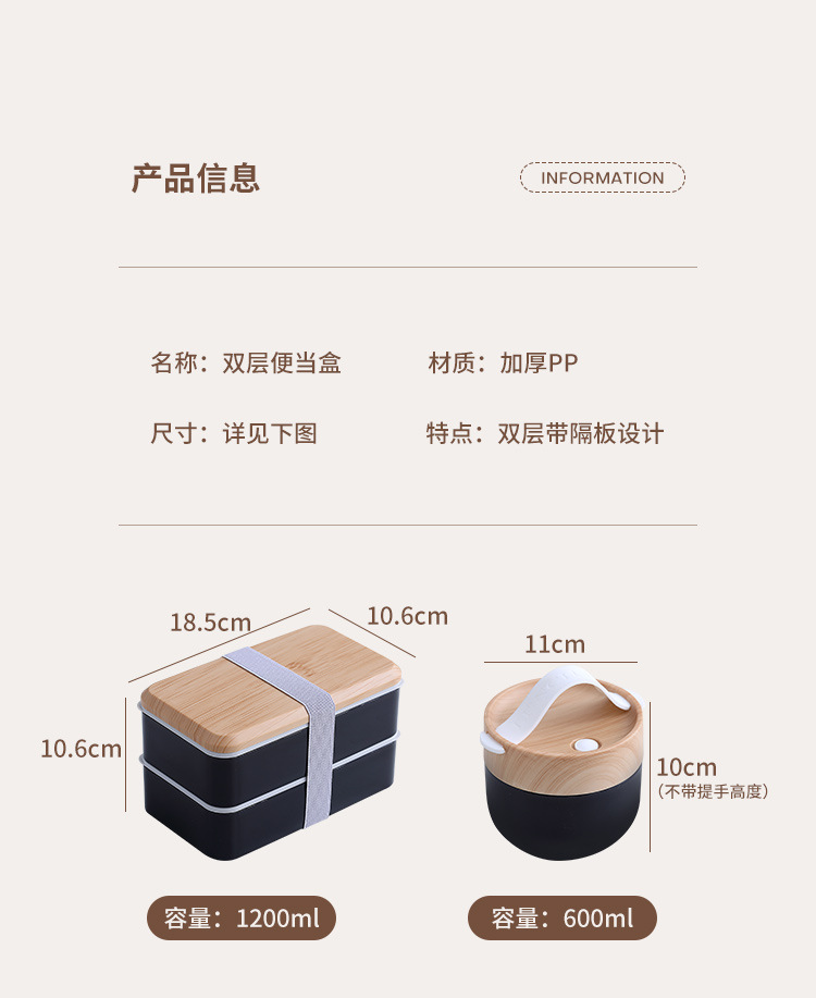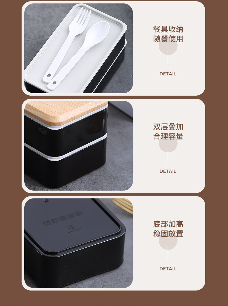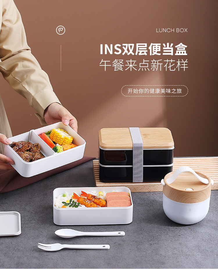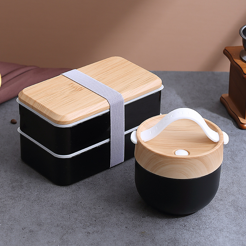 간단한 일본 도시락 도시락 포장 상자 어린이 야외 냉장고 전자 레인지 식기 플라스틱 스푼 도매 세트