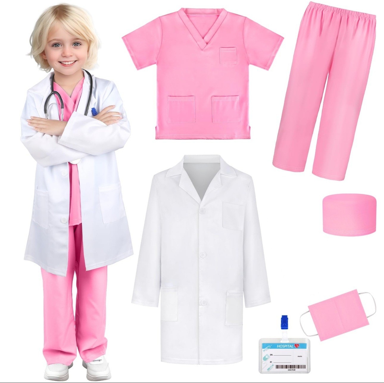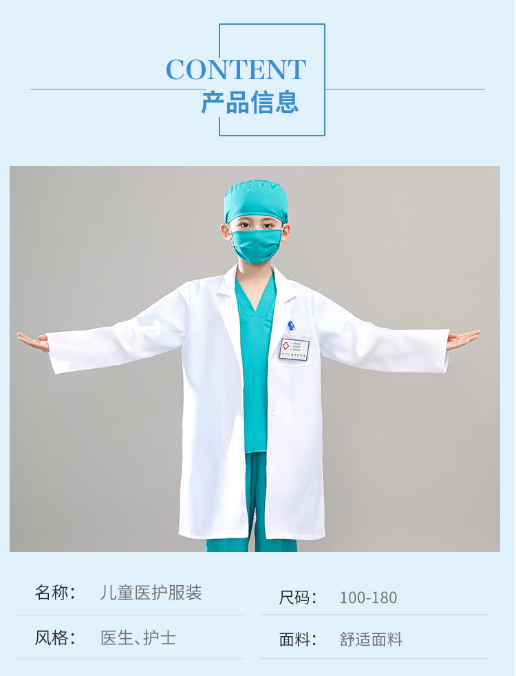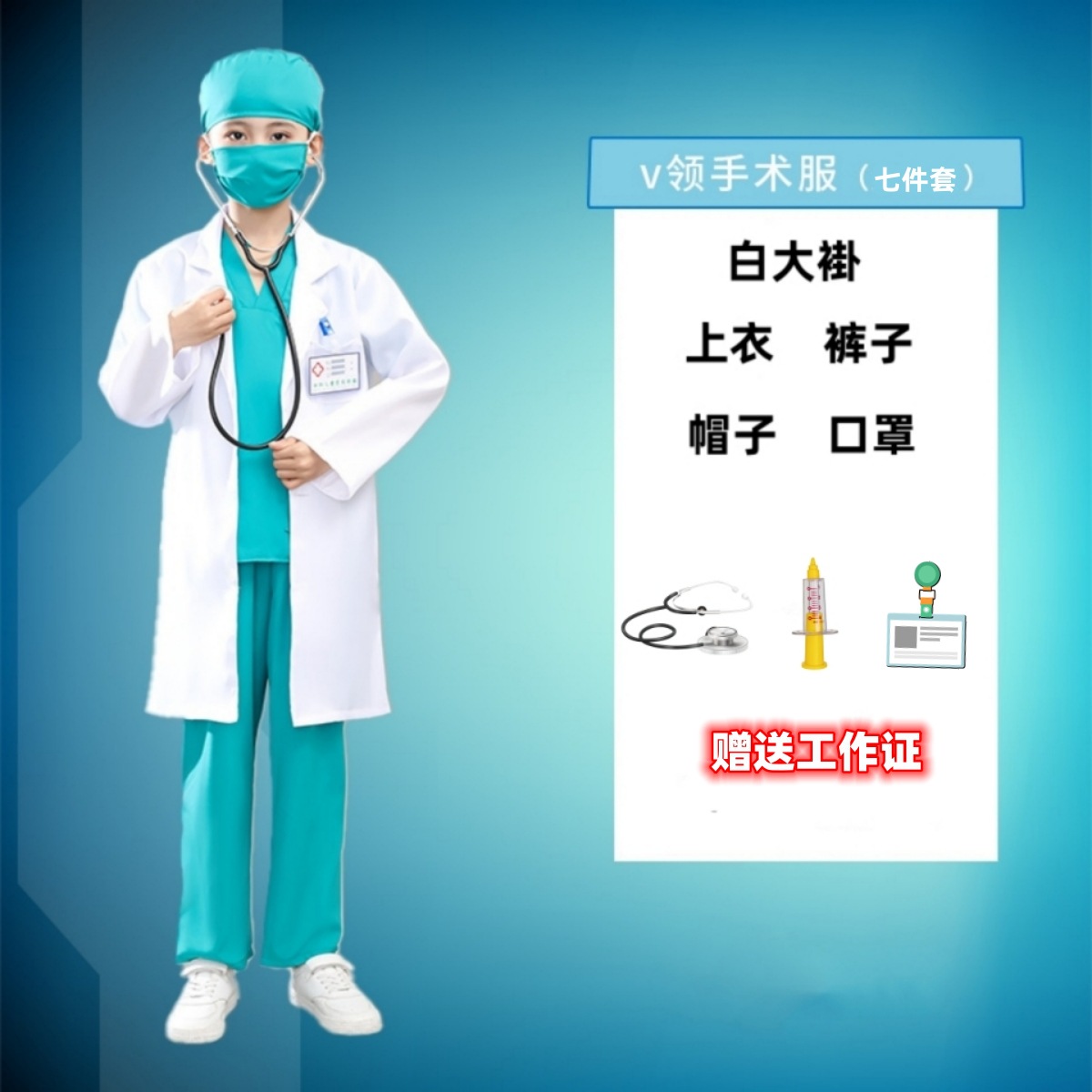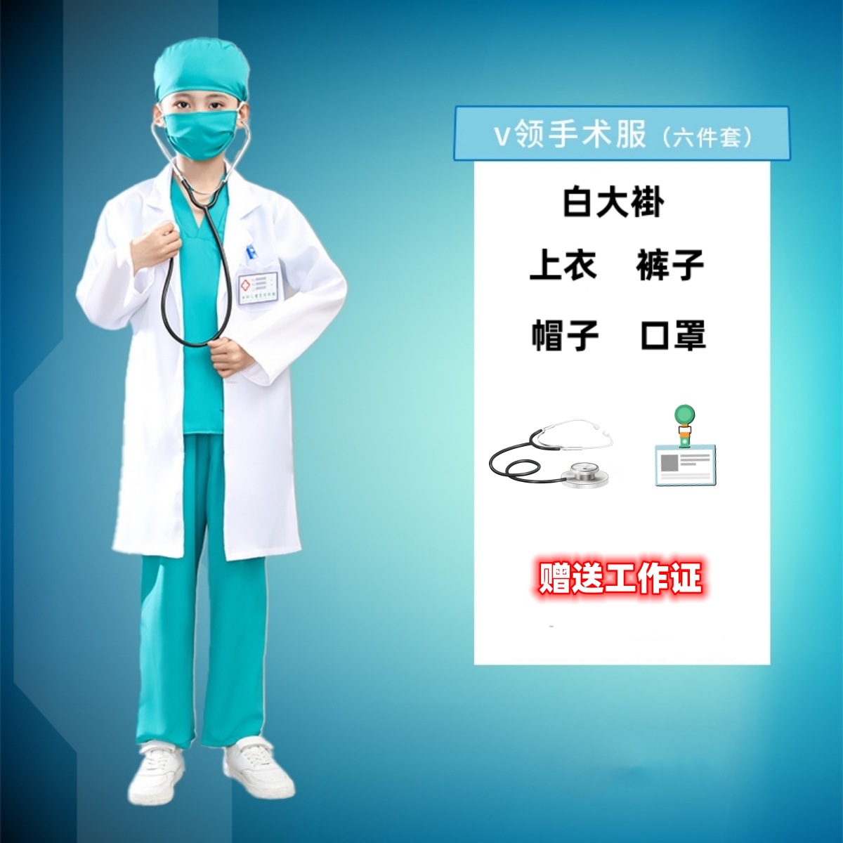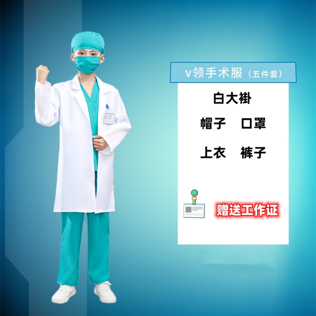 어린이 의사 의류 보호 화이트 코트 성능 의류 소녀 안티 전염병 역할 놀이 간호사 의류 외과 의류 세트