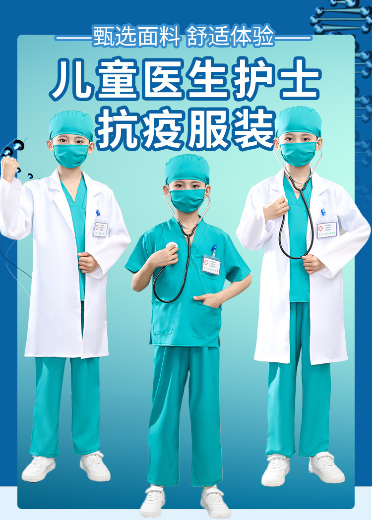 어린이 의사 의류 보호 화이트 코트 성능 의류 소녀 안티 전염병 역할 놀이 간호사 의류 외과 의류 세트스토어 가기
