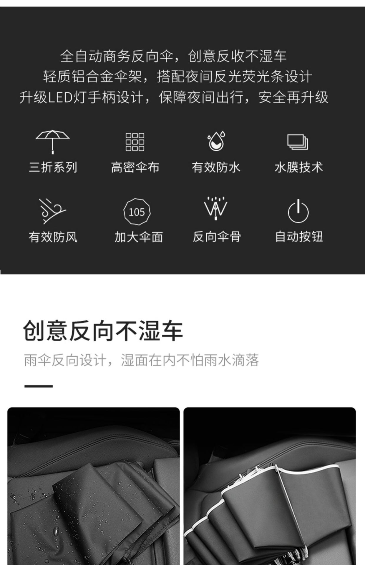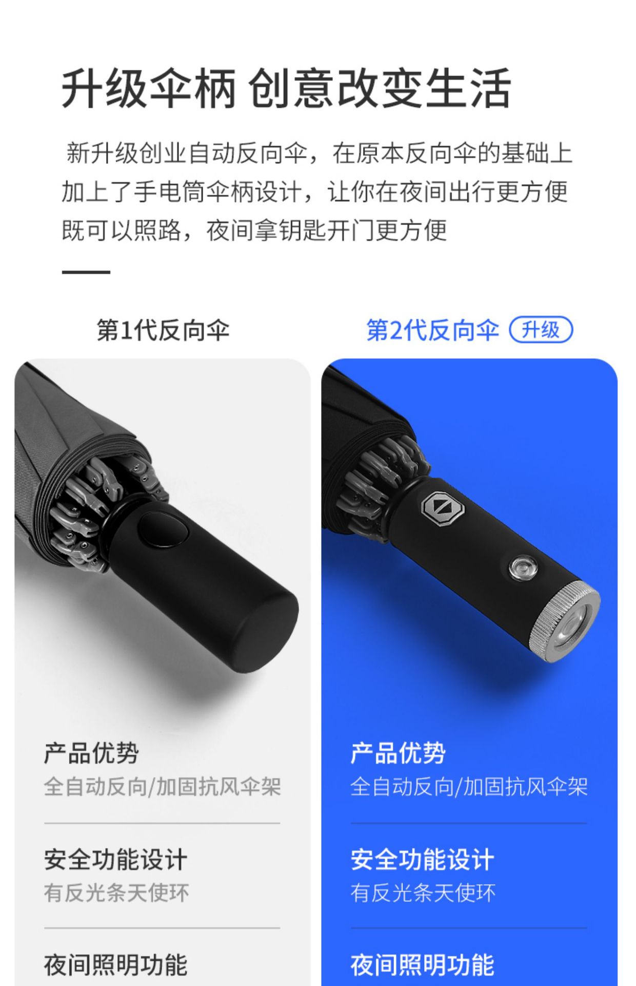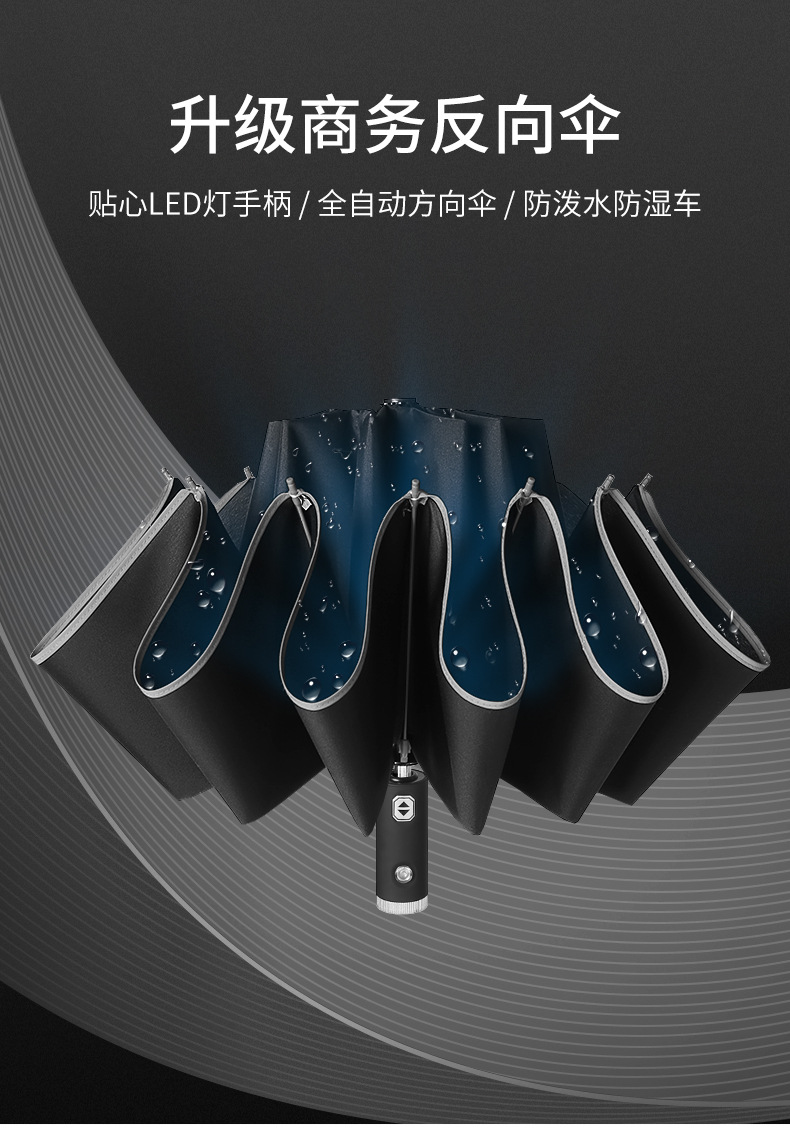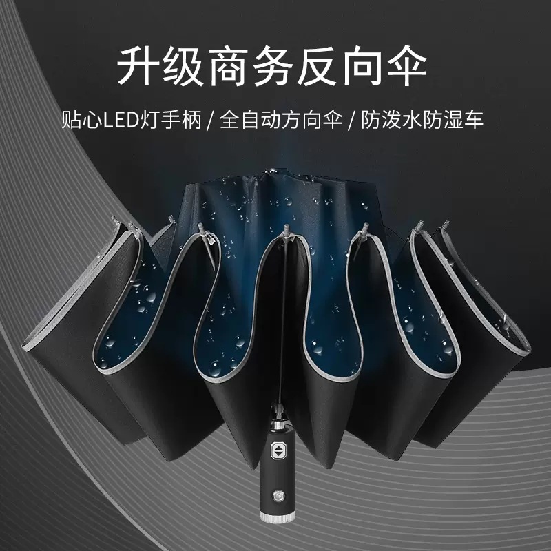 광고 로고를 인쇄할 수 있도록 우산 자동 역 접기 선 스크린 우산 반사 벨트 손전등