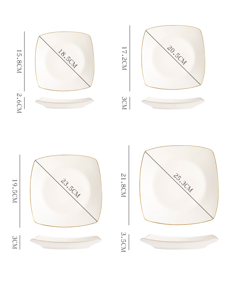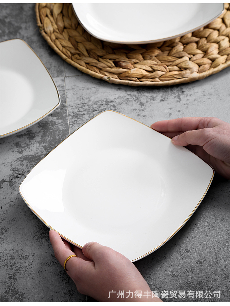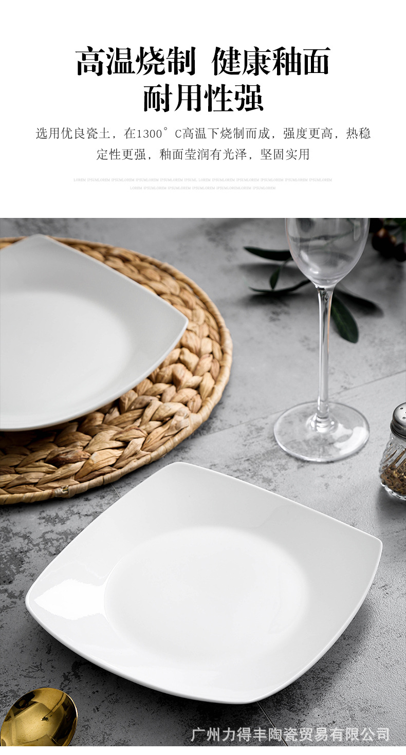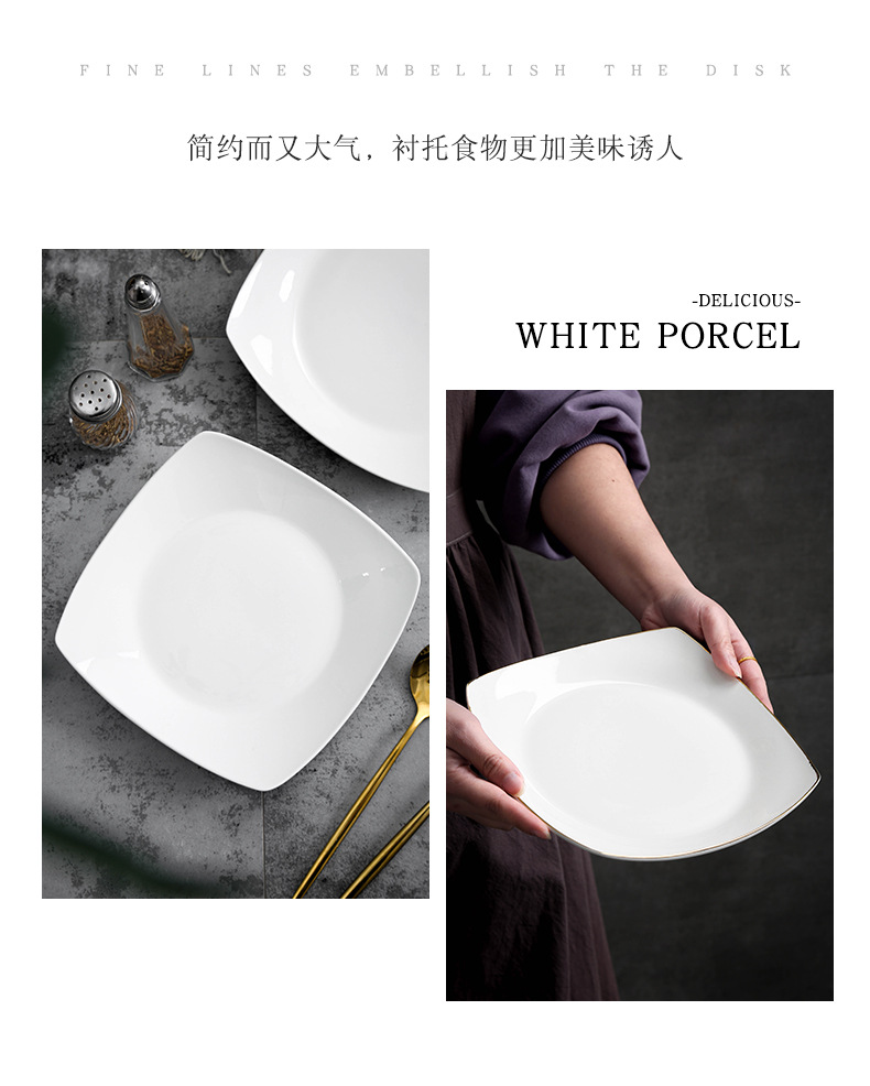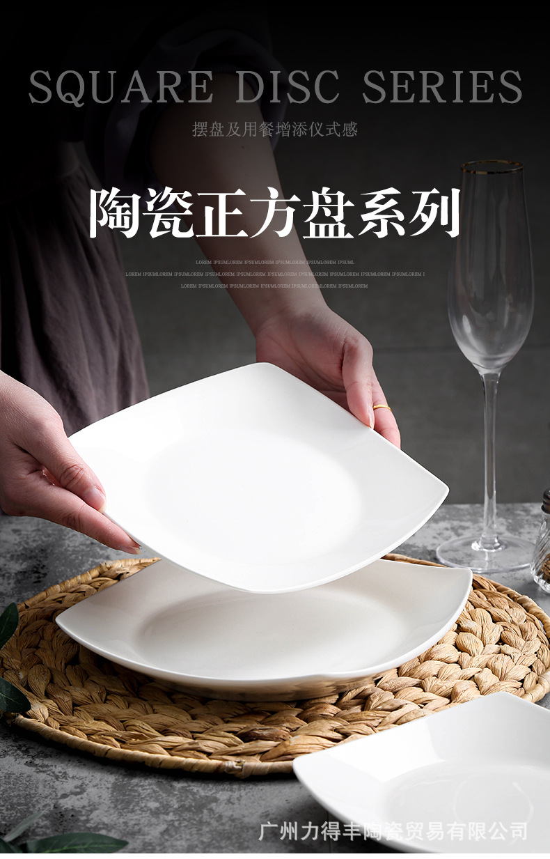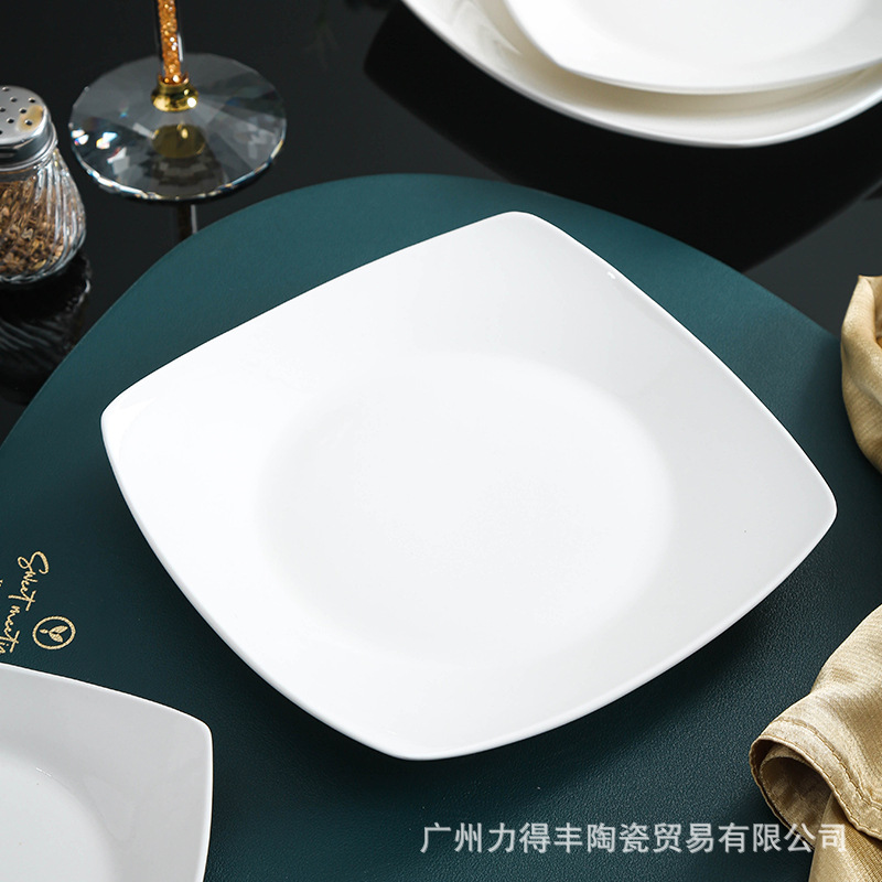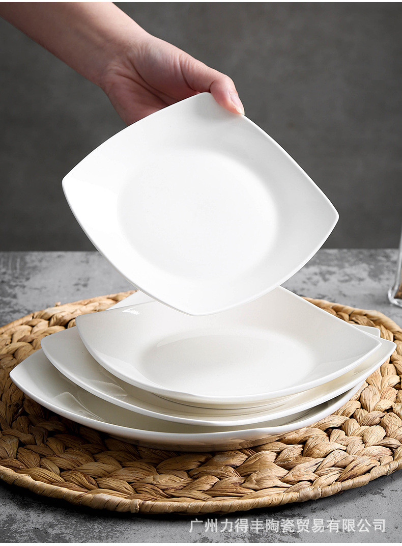 순수한 흰색 세라믹 플레이트 접시 가정용 세라믹 창조적 인 식기 광장 4 코너 플레이트 스퀘어 플레이트 스퀘어 수프 스퀘어 플레이트