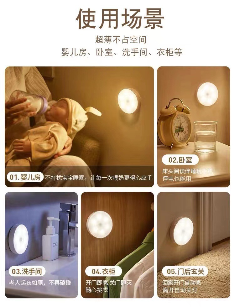 인체 유도 야간 조명 침실 옷장 침대 옆 조명 제어 야간 조명 캐비닛 창조적 인 선물 충전 야간 조명스토어 가기