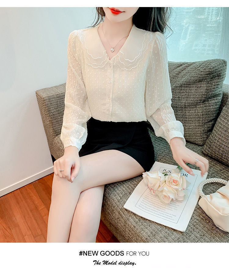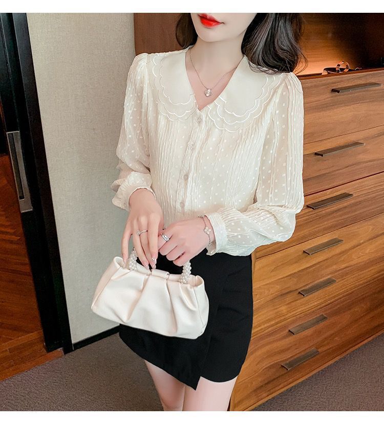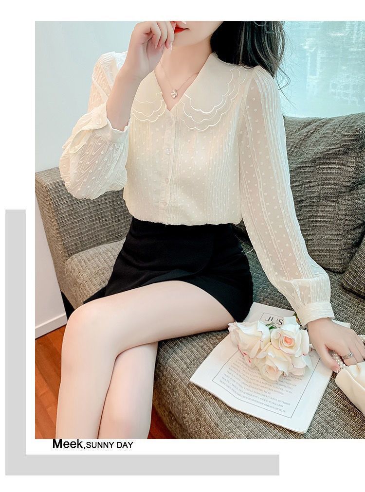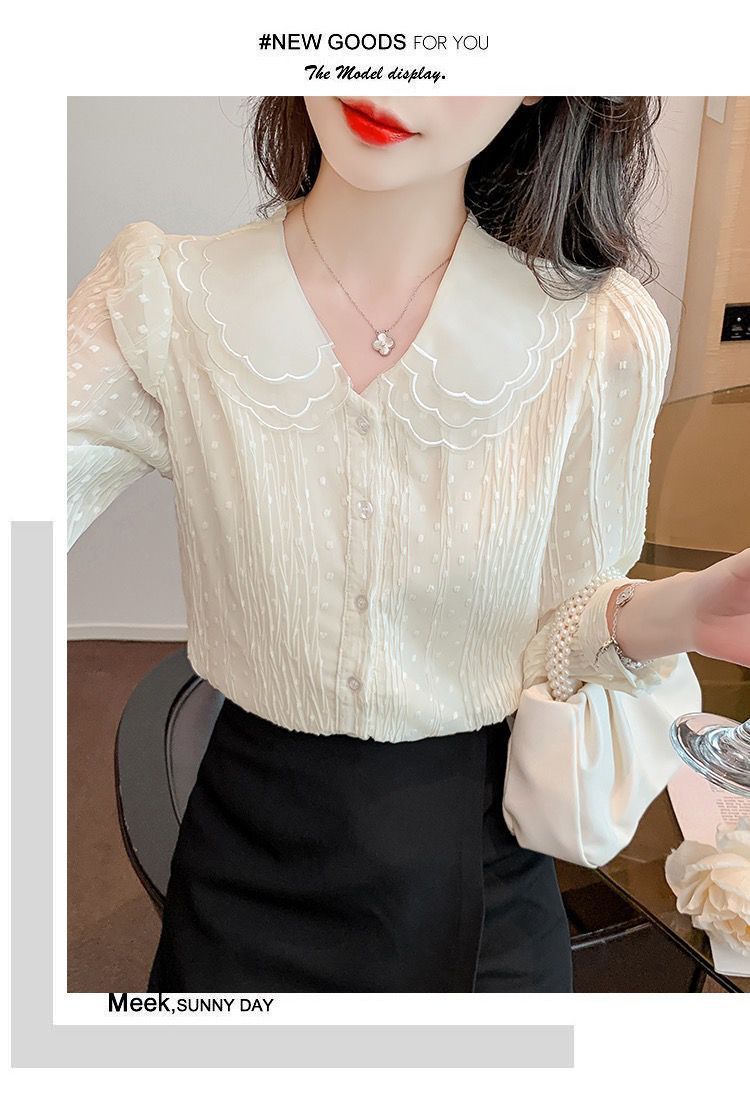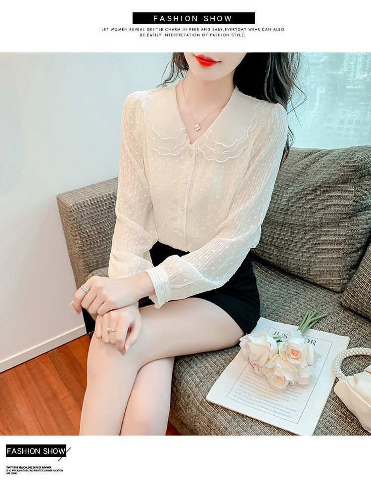 봄 긴팔 인형 칼라 쉬폰 셔츠 여성용 20223 가을 새 여성 밀착 슬림 긴팔 셔츠스토어 가기